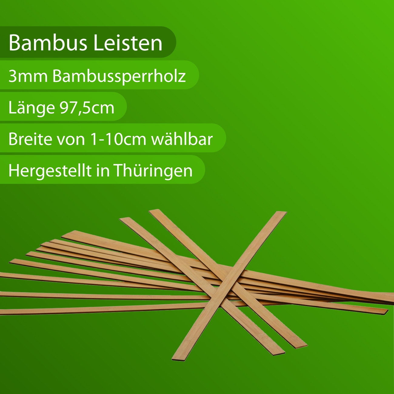 aus 3mm starkem Bambussperrholz. Breite von 1-10cm wählbar. Einzeln oder als Set mit 10, 25, 50, 100, 250 oder 500 Stück.