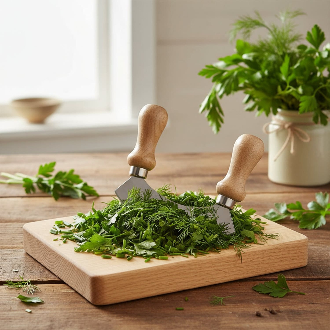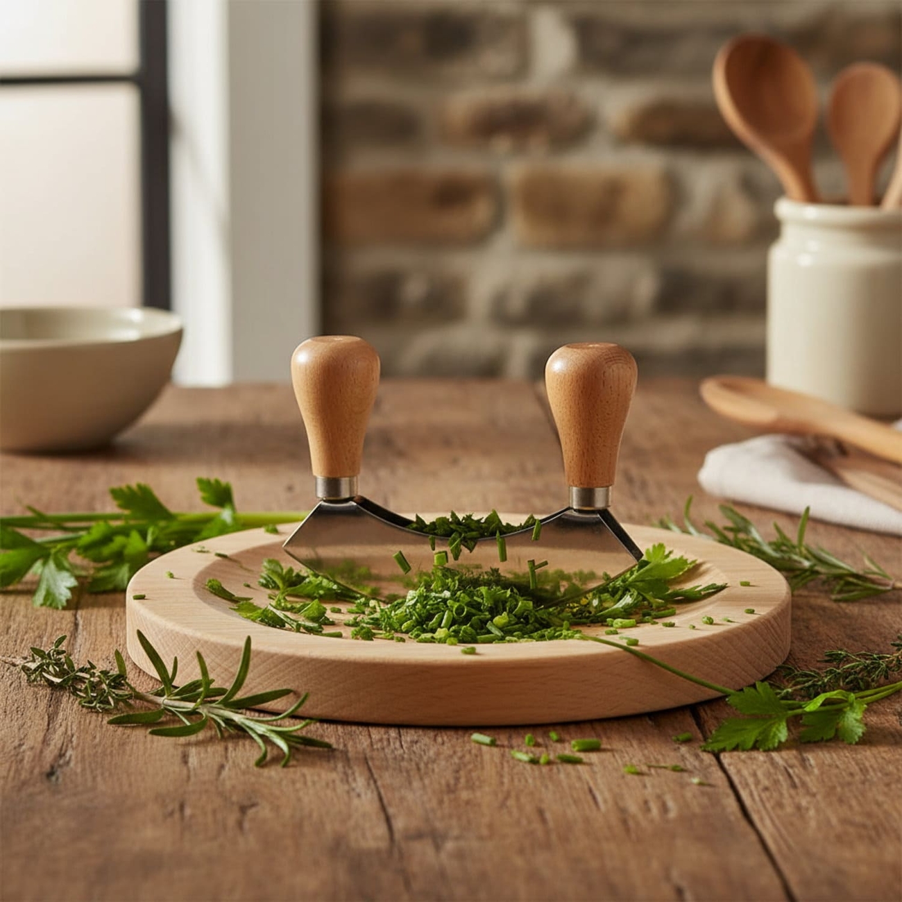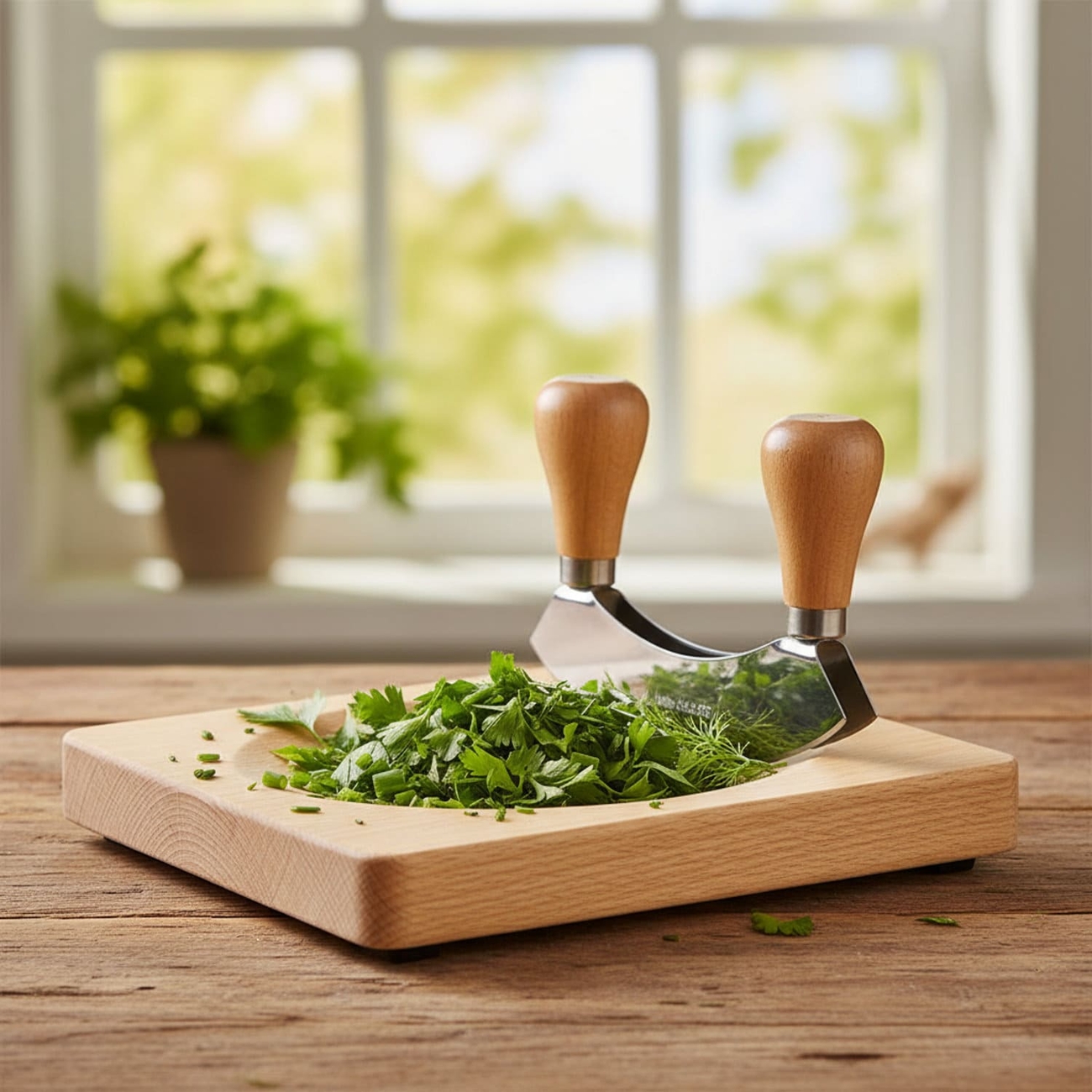 auswählbare Kräuterbretter und Wiegemesser je nach Verfügbarkeit: