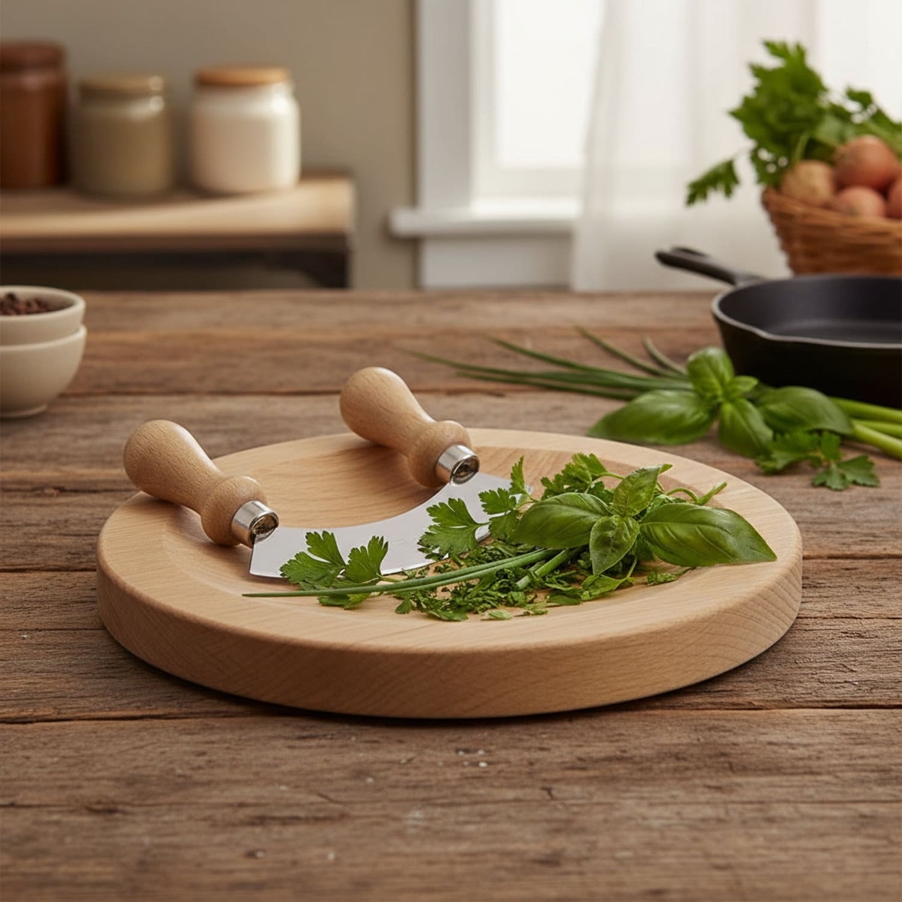 + Set Kräuterbrett rund + Wiegemesser mit Doppelklinge