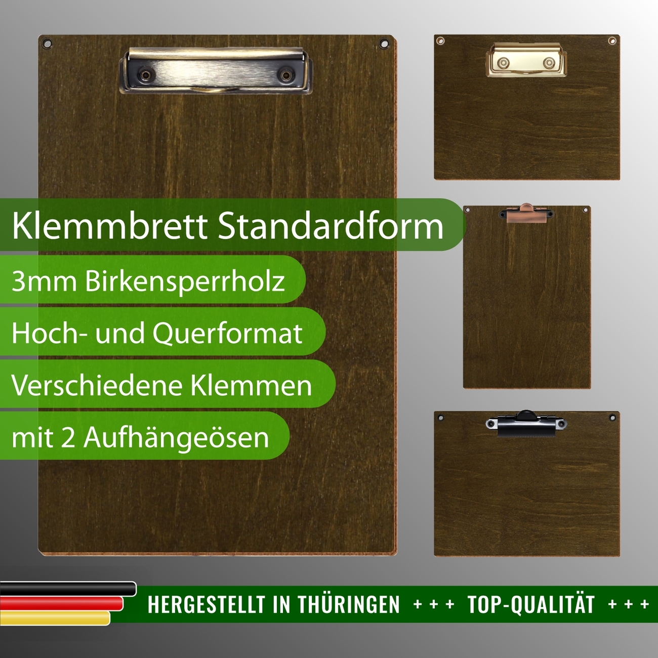 Holzklemmbrett Haselnuss, farbiges Klemmbrett, lackierte Schreibunterlage, Clipboard Standardform, Speisekartenhalter mit Klemme, Schreibunterlage aus HolzDazu passend...