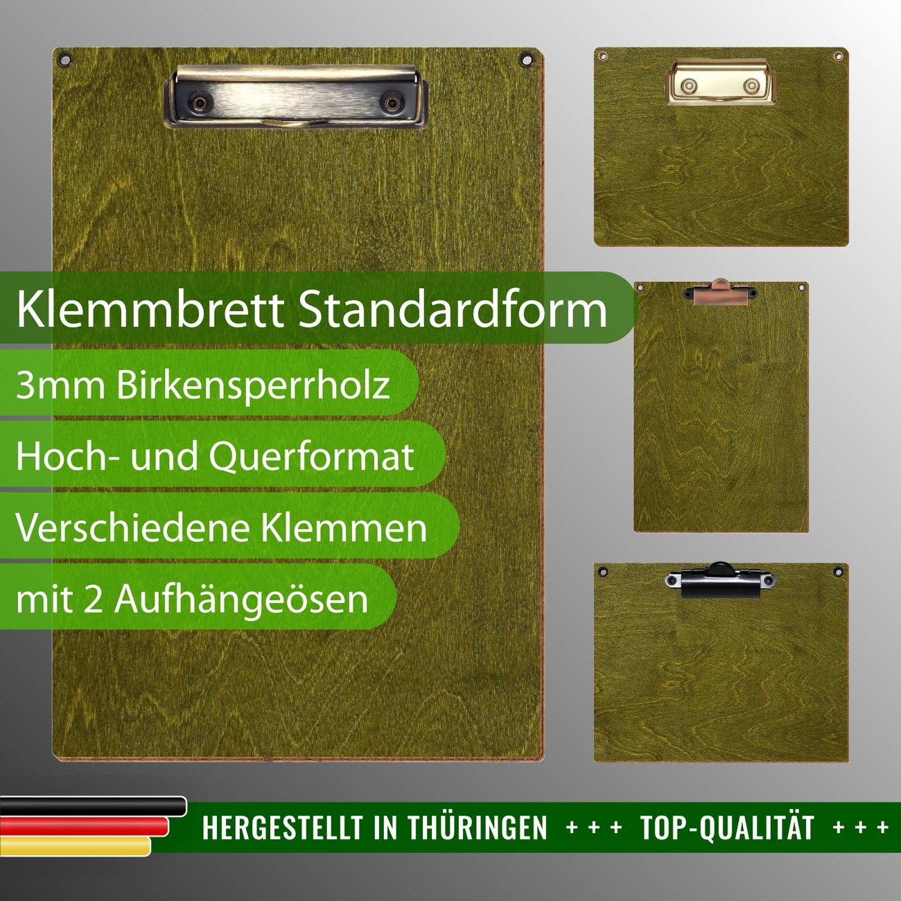 olivgrünes Holzklemmbrett, farbiges Klemmbrett, lackierte Schreibunterlage, Clipboard Standardform, Speisekartenhalter mit Klemme, Schreibunterlage aus HolzDazu passend...