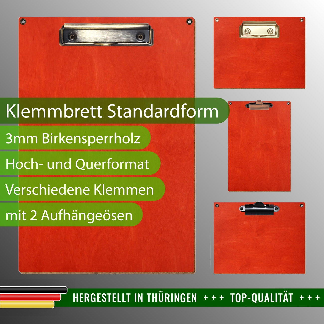 + Lieferumfang: ein Klemmbrett in ausgewählter Größe und Clipfarbe