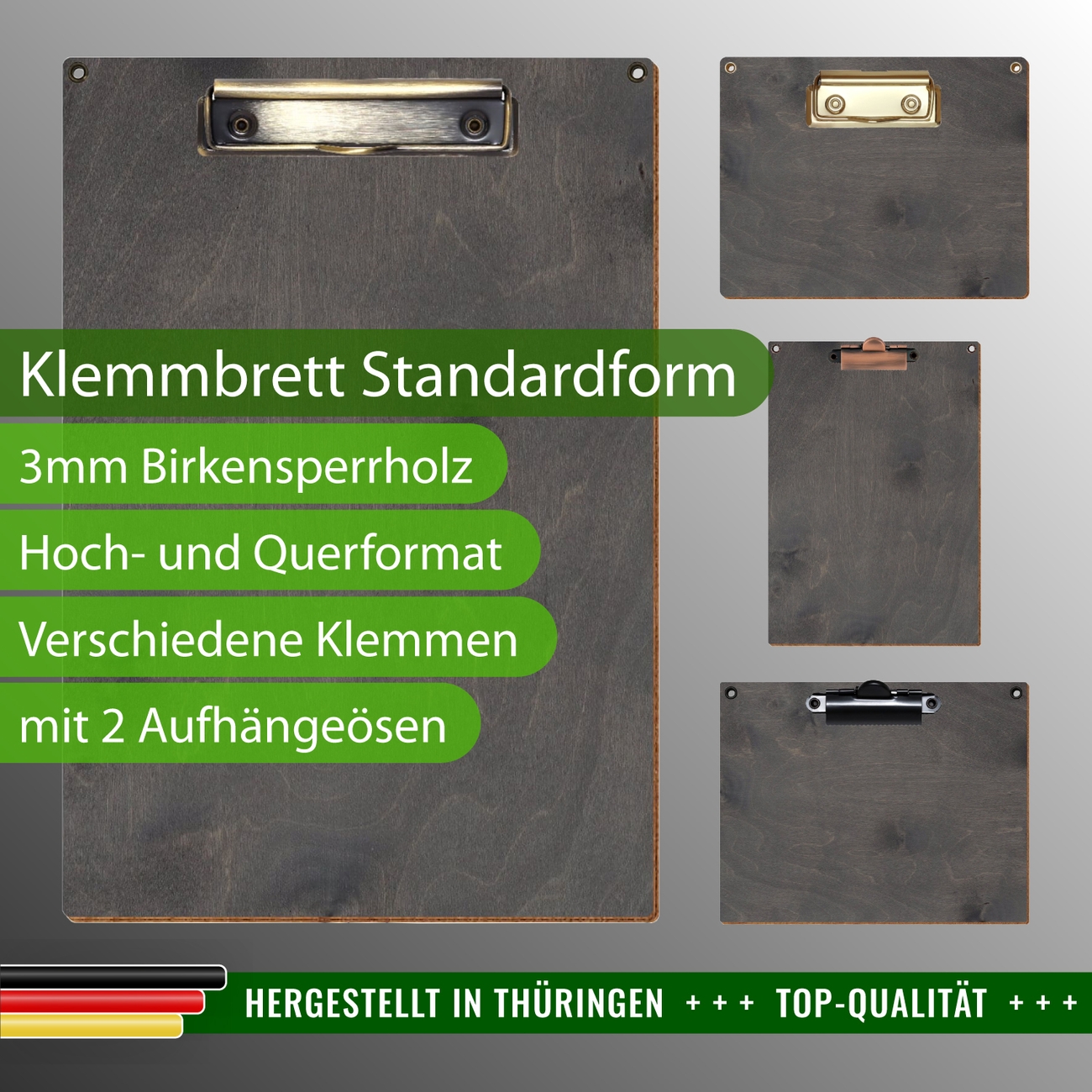 + Lieferumfang: ein Klemmbrett in ausgewählter Größe und Clipfarbe