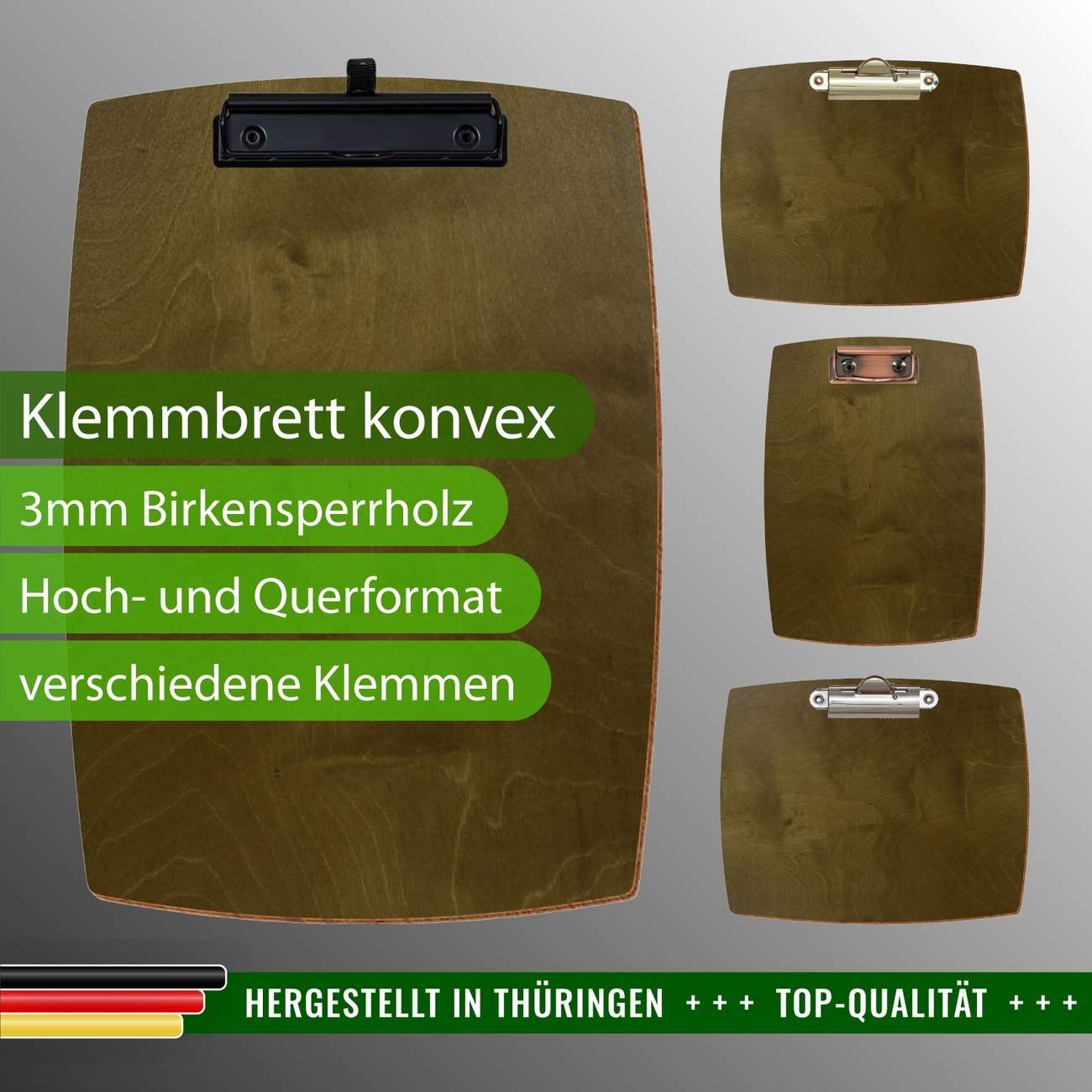 + Lieferumfang: ein Klemmbrett in ausgewählter Größe und Clipfarbe