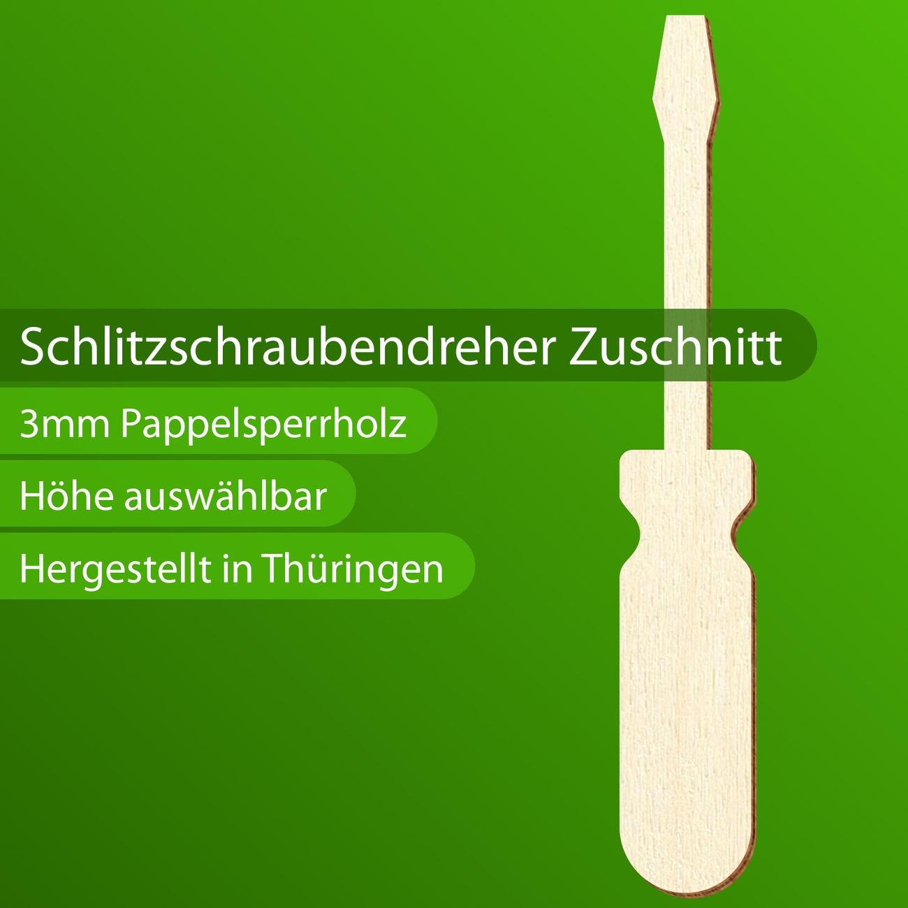 Schlitz Schraubendreher-Silhouette aus Sperrholz - 3-50cm Höhe - Einzeln oder als Set mit 10, 25, 50 oder 100 Stück - Deko Basteln