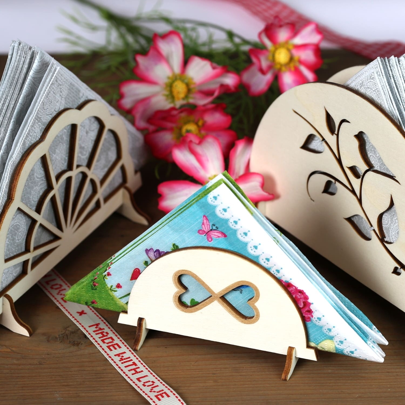 Bütic Serviettenhalter aus Sperrholz in verschiedenen Motiven und 3 Größen.