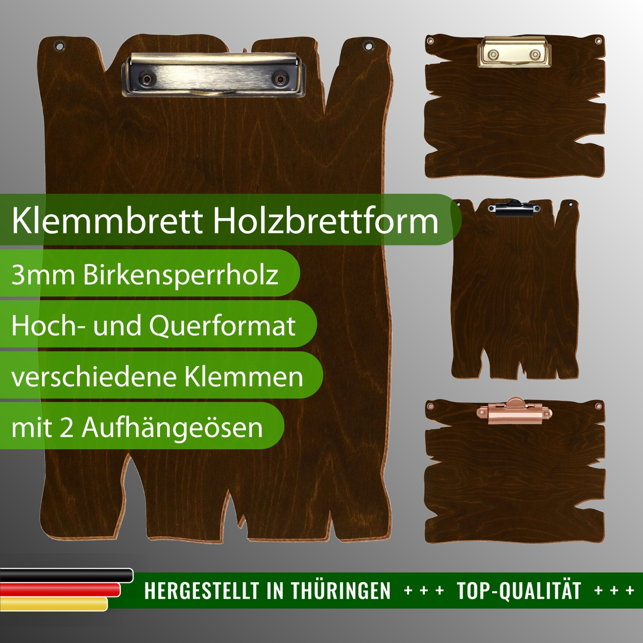 - alle Klemmbretter in Holzbrettform anzeigen