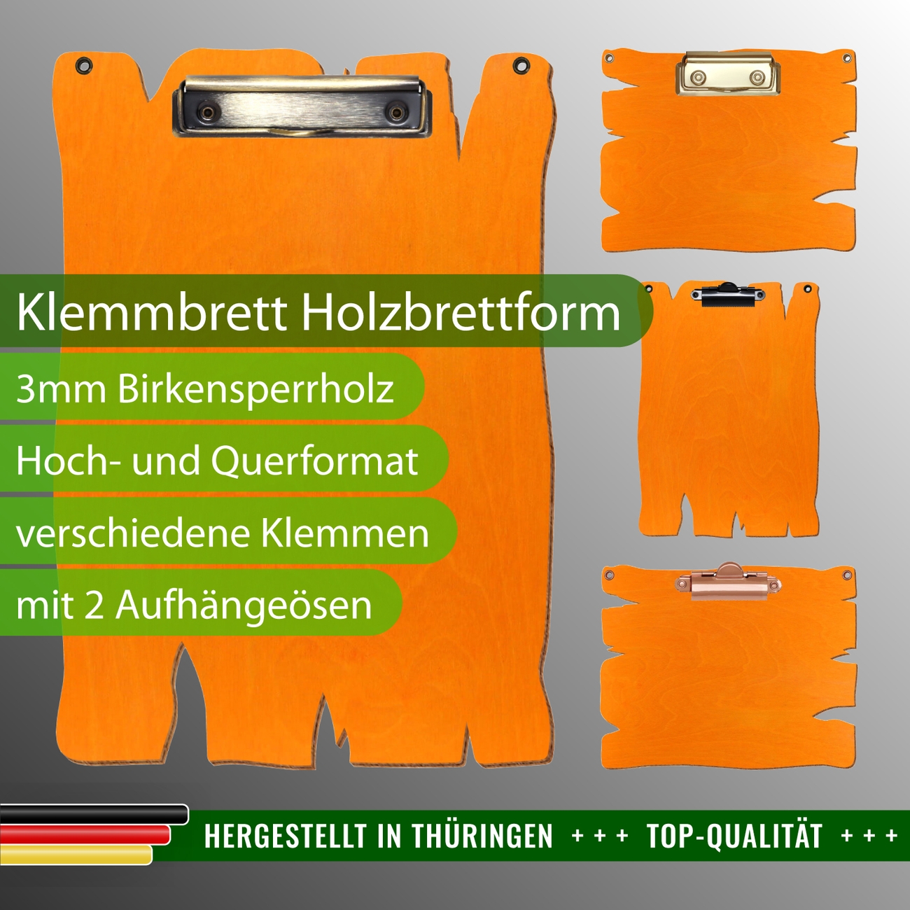 + Lieferumfang: ein Klemmbrett in ausgewählter Größe und Clipfarbe