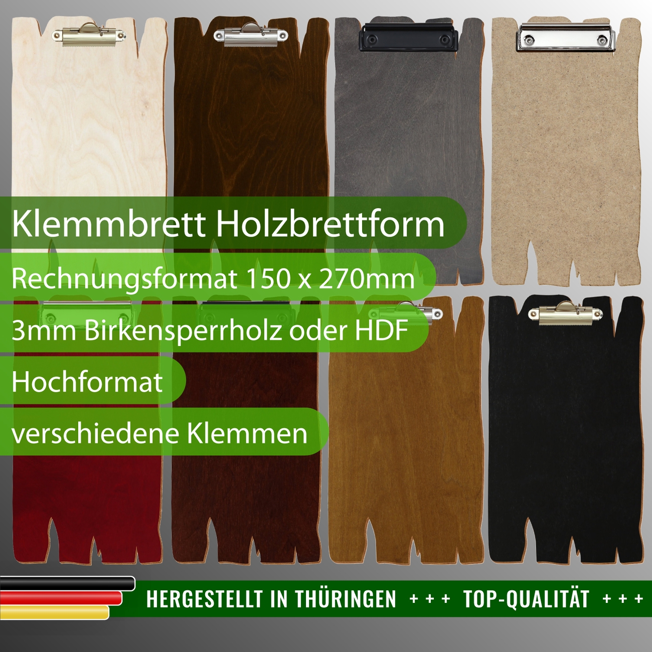 farbiges Holzklemmbrett, Klemmbrett im Rechnungsformat, lackierte Schreibunterlage, Clipboard Holzbrettform, Speisekartenhalter mit Klemme, Schreibunterlage aus HolzDazu passend...