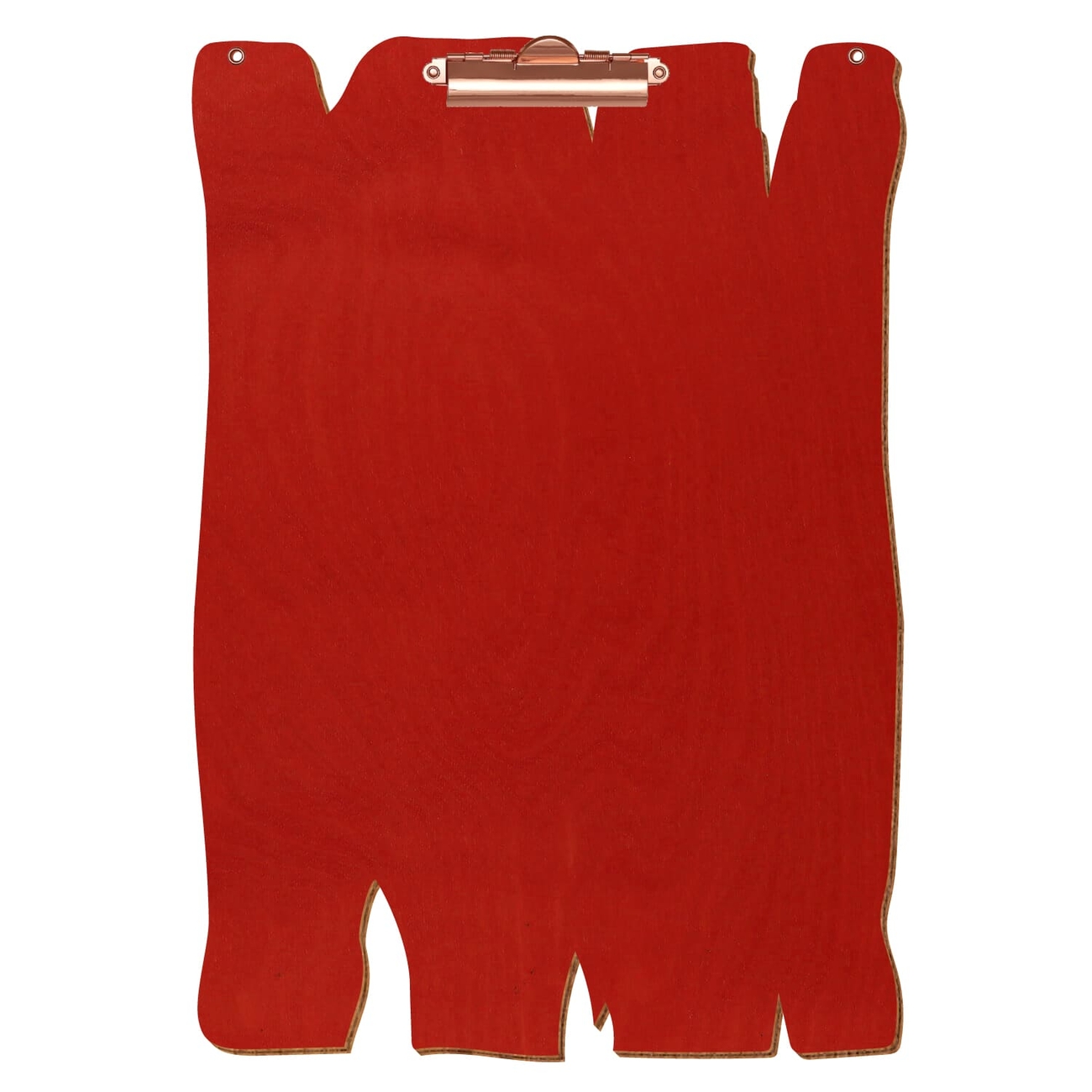 rotes Holzklemmbrett, farbiges Klemmbrett, lackierte Schreibunterlage, Clipboard Holzbrettoptik, Speisekartenhalter mit Klemme, Schreibunterlage aus Holz