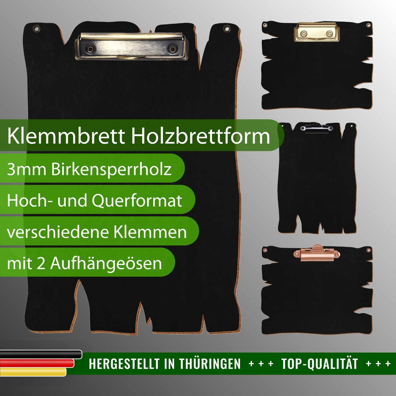 schwarzes Holzklemmbrett, farbiges Klemmbrett, lackierte Schreibunterlage, Clipboard Holzbrettoptik, Speisekartenhalter mit Klemme, Schreibunterlage aus Holz