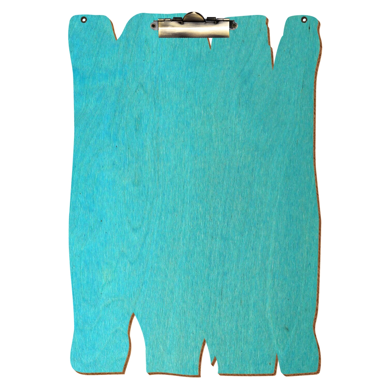 türkises Holzklemmbrett, farbiges Klemmbrett, lackierte Schreibunterlage, Clipboard Holzbrettoptik, Speisekartenhalter mit Klemme, Schreibunterlage aus Holz