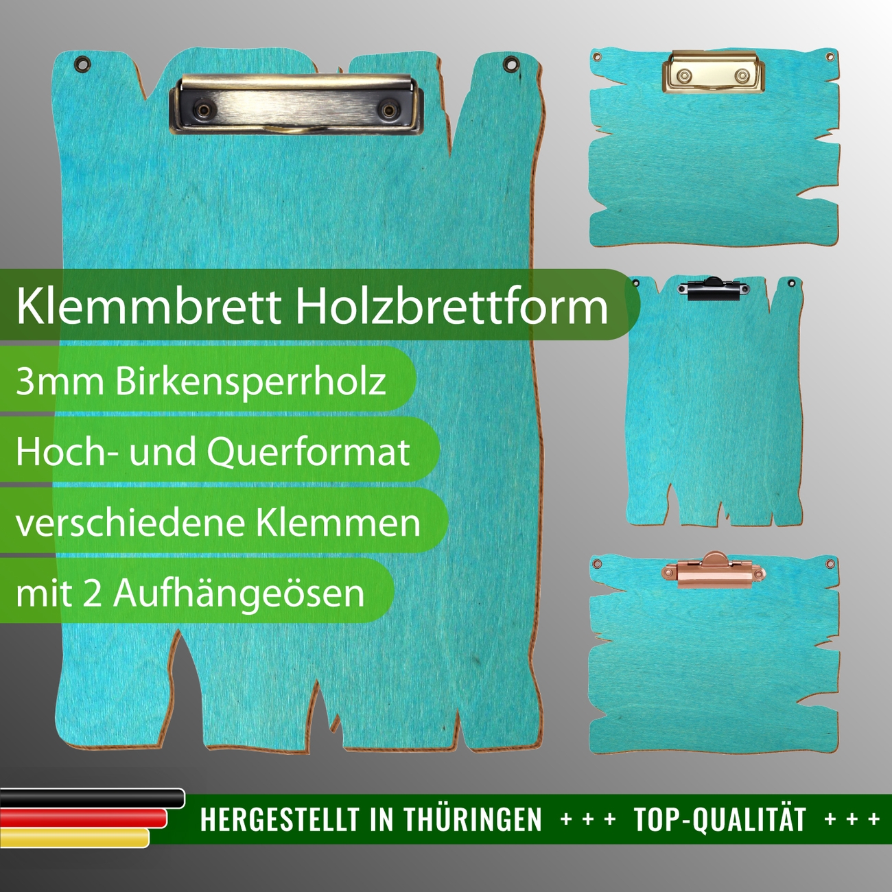 Klemmbrett Holzbrettform Türkis mit Ösen