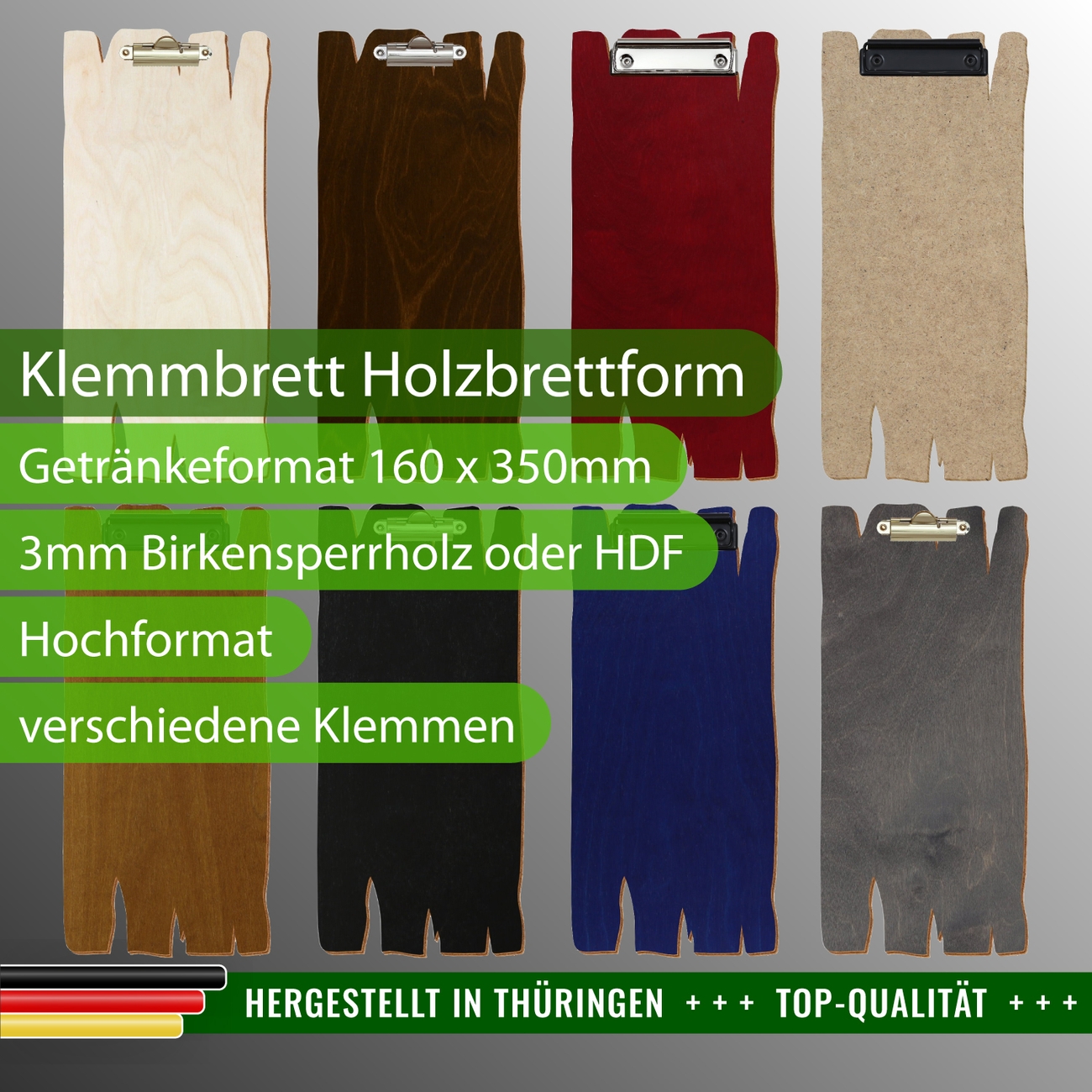 farbiges Holzklemmbrett, Klemmbrett für Getränkekarte, lackierte Schreibunterlage, Clipboard Holzbrettform, Speisekartenhalter mit Klemme, Schreibunterlage aus HolzDazu passend...