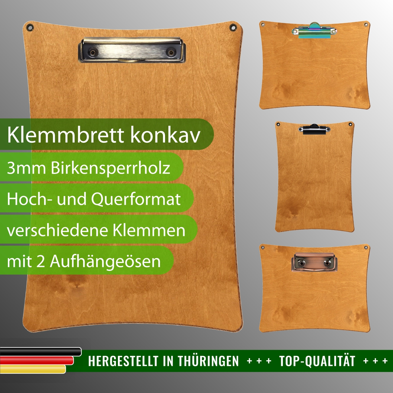 + Lieferumfang: ein Klemmbrett in ausgewählter Größe und Clipfarbe