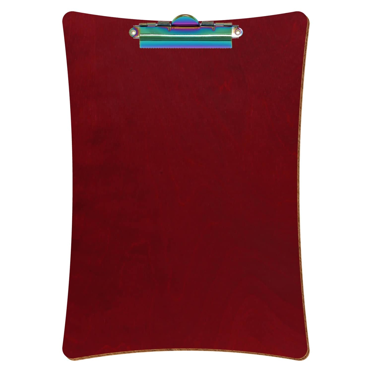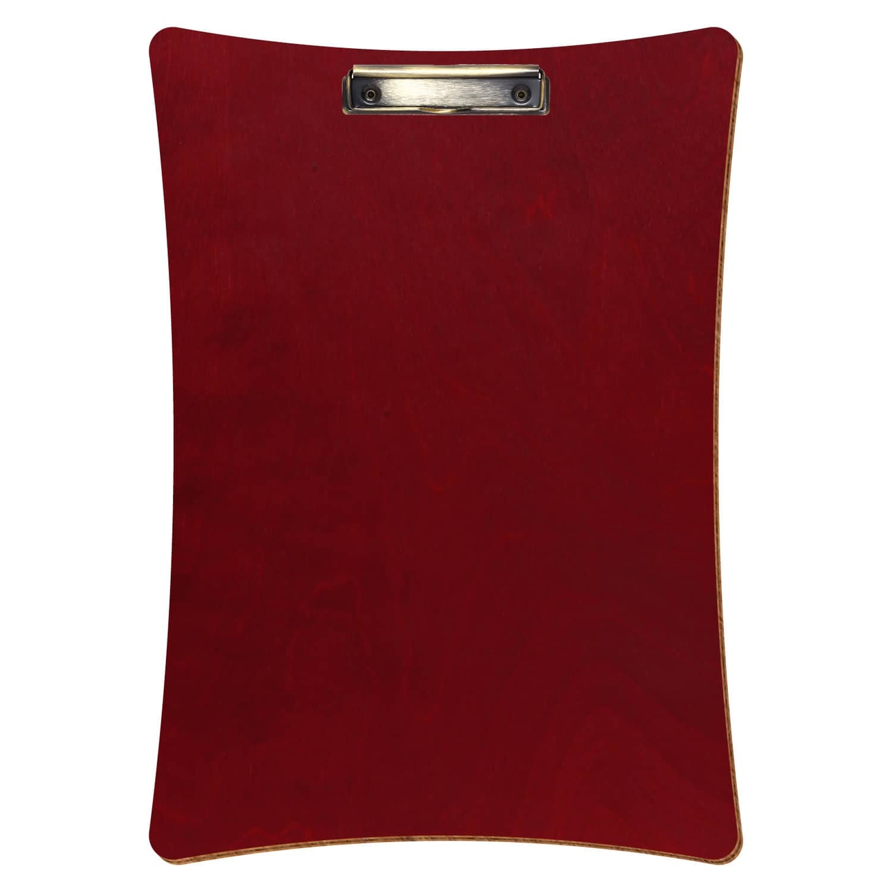 dunkelrotes Holzklemmbrett, farbiges Klemmbrett, lackierte Schreibunterlage, Clipboard konkav, Speisekartenhalter mit Klemme, Schreibunterlage aus Holz