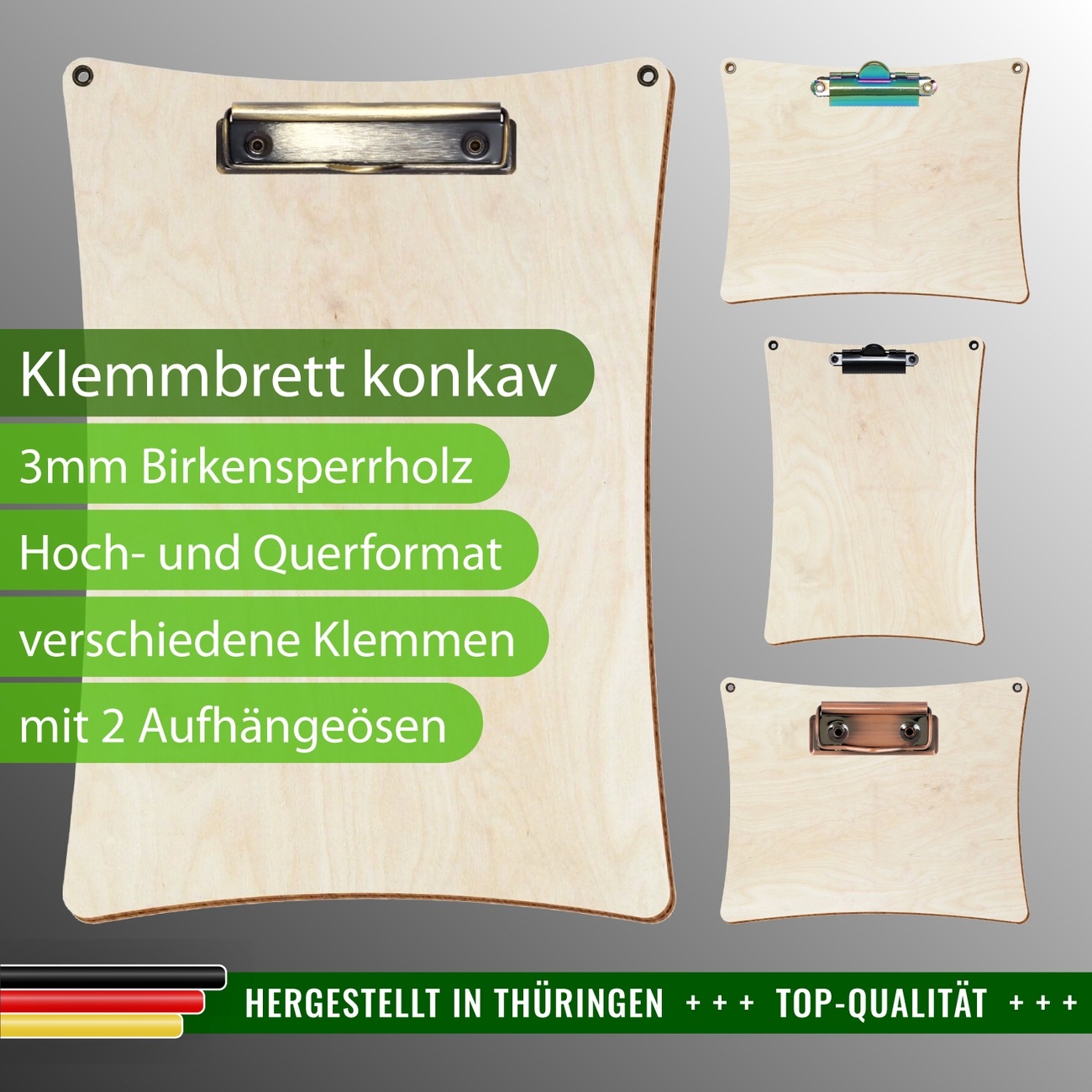 + Lieferumfang: ein Klemmbrett in ausgewählter Größe und Clipfarbe