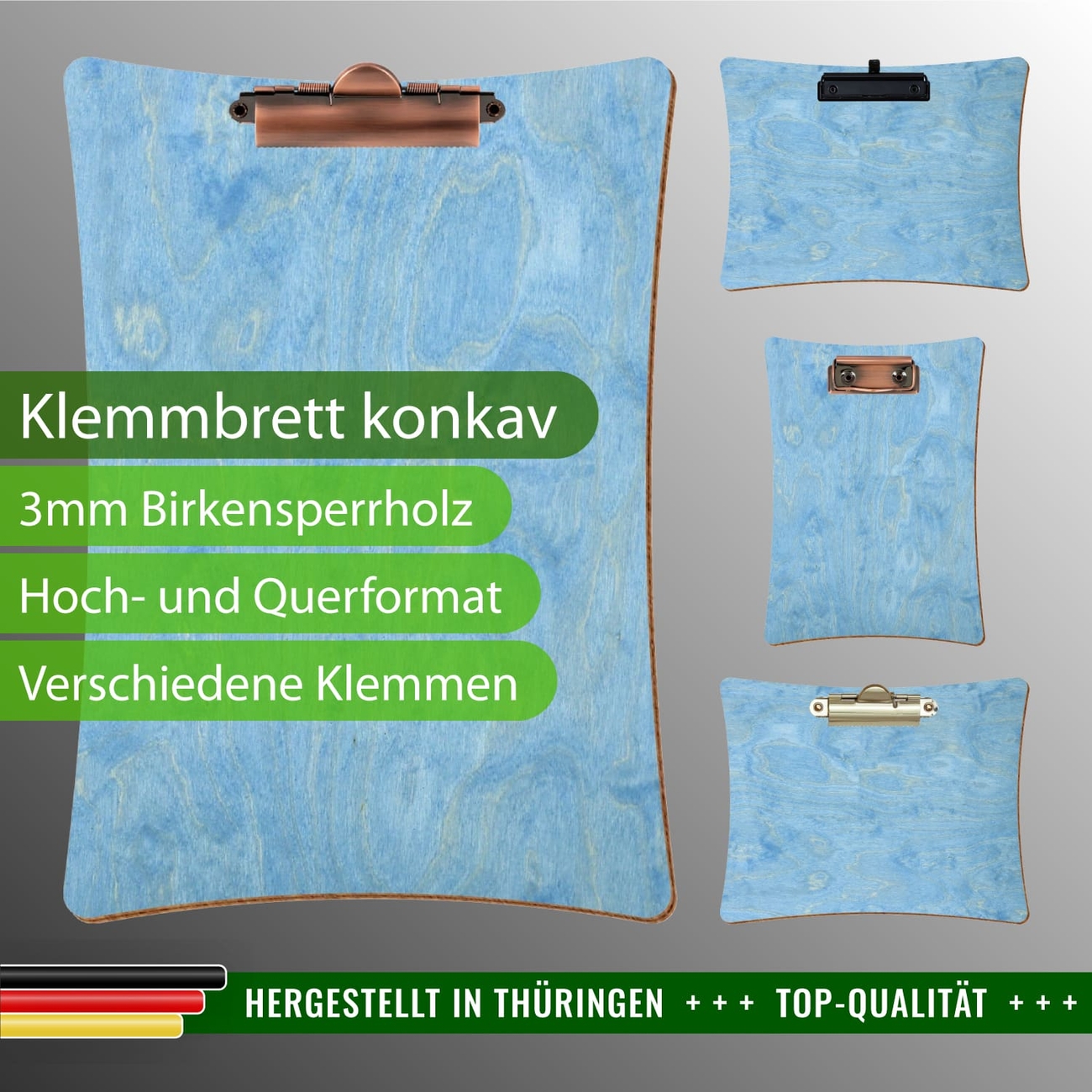 Bütic Holz Klemmbrett in abgerundeter, konkaver Form, Clipboard für A3, A4, A5 oder A6 Format, hoch oder quer.