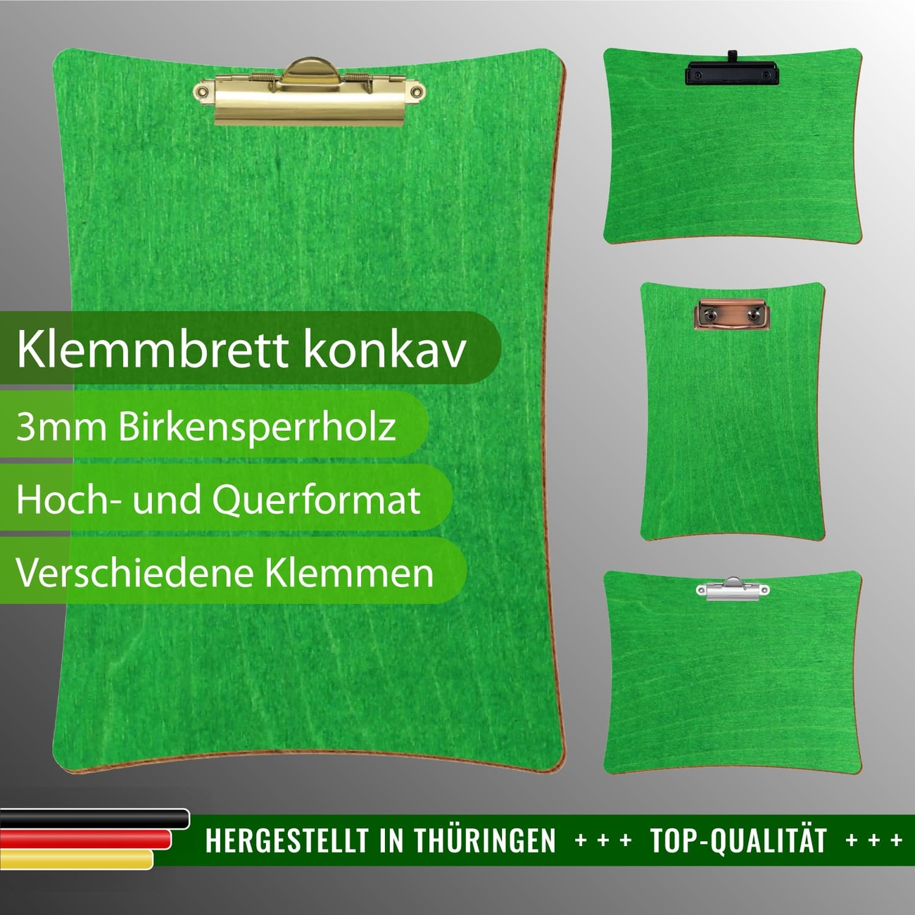 Bütic Holz Klemmbrett in abgerundeter, konkaver Form, Clipboard für A3, A4, A5 oder A6 Format, hoch oder quer.