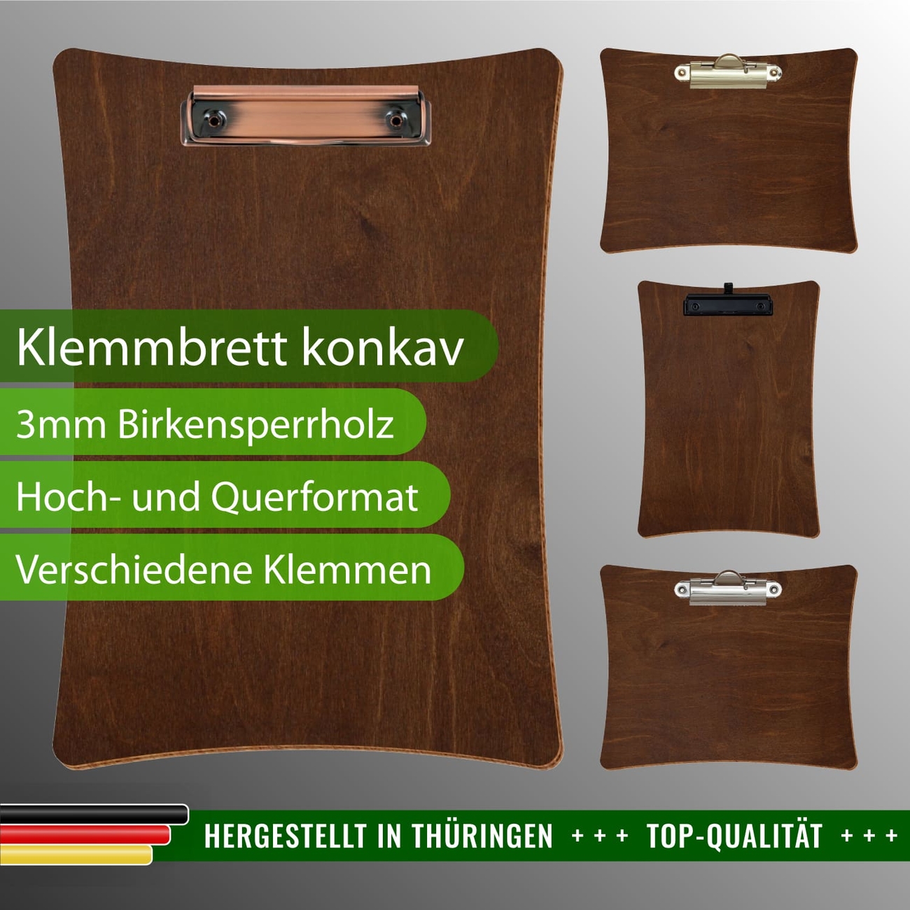 Bütic Holz Klemmbrett in abgerundeter, konkaver Form, Clipboard für A3, A4, A5 oder A6 Format, hoch oder quer.