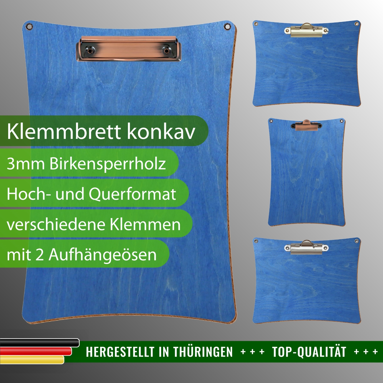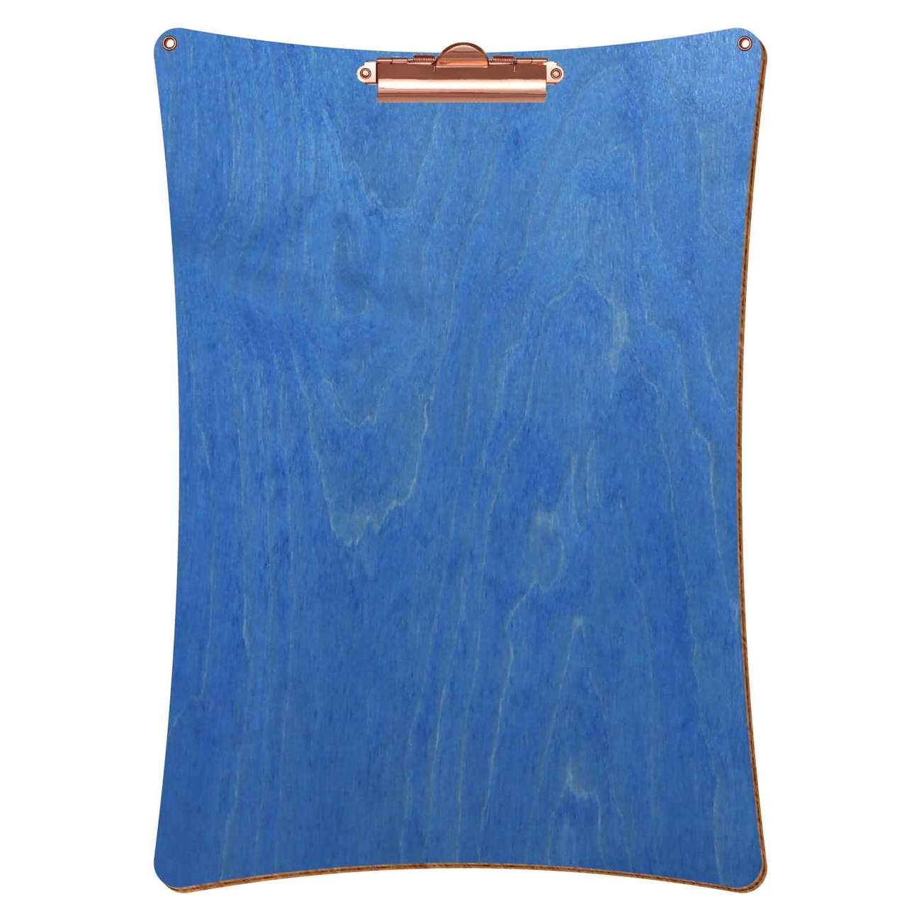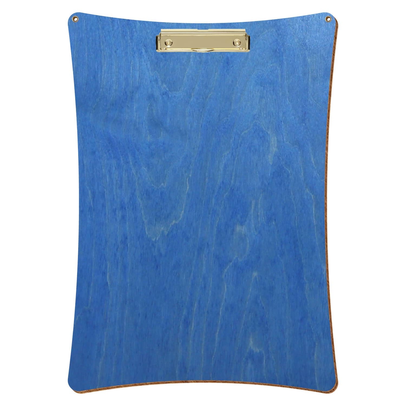 kornblumenblaues Holzklemmbrett, farbiges Klemmbrett, lackierte Schreibunterlage, konkaves Clipboard, Speisekartenhalter mit Klemme, Schreibunterlage aus Holz