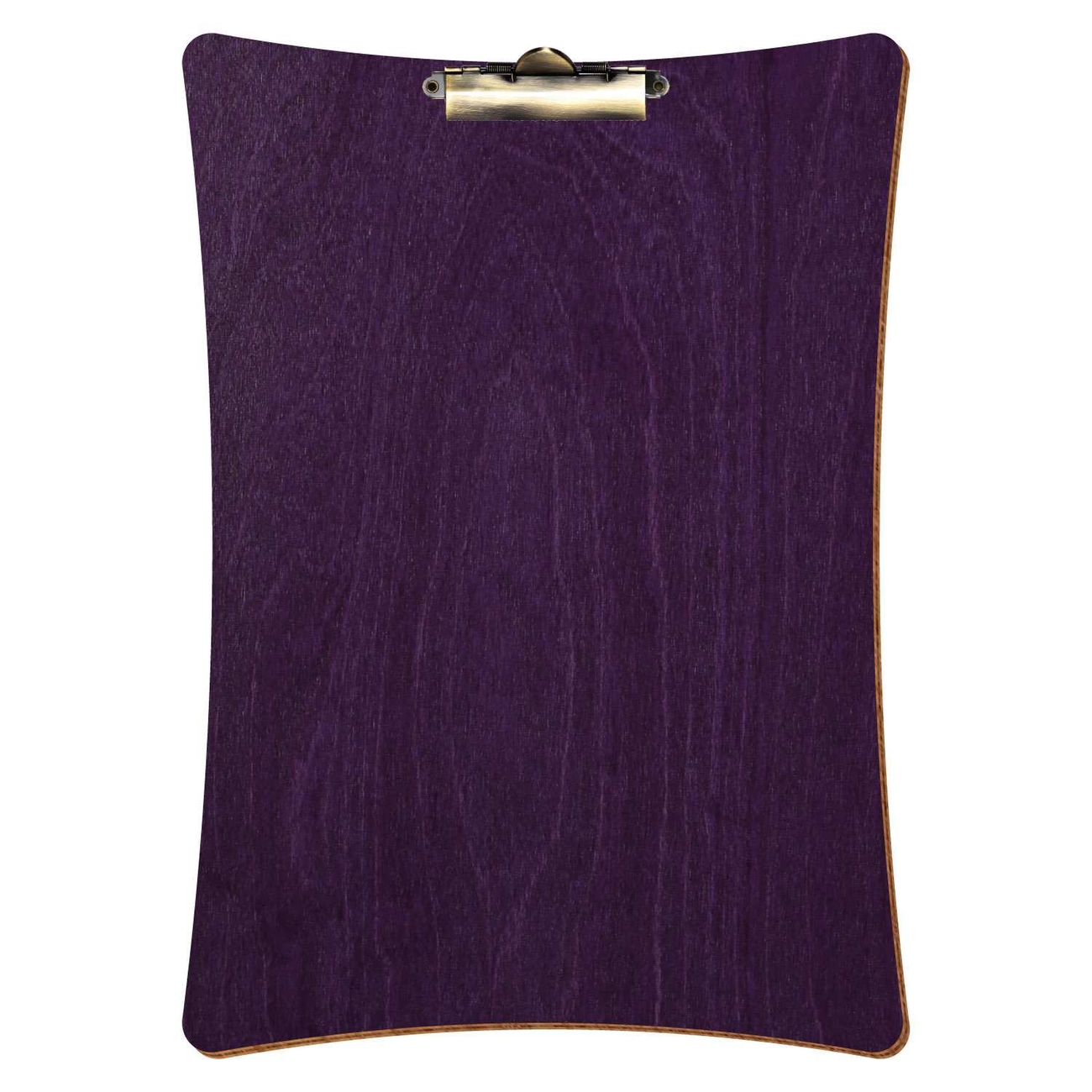 lila Holzklemmbrett, farbiges Klemmbrett, lackierte Schreibunterlage, Clipboard konkav, Speisekartenhalter mit Klemme, Schreibunterlage aus Holz