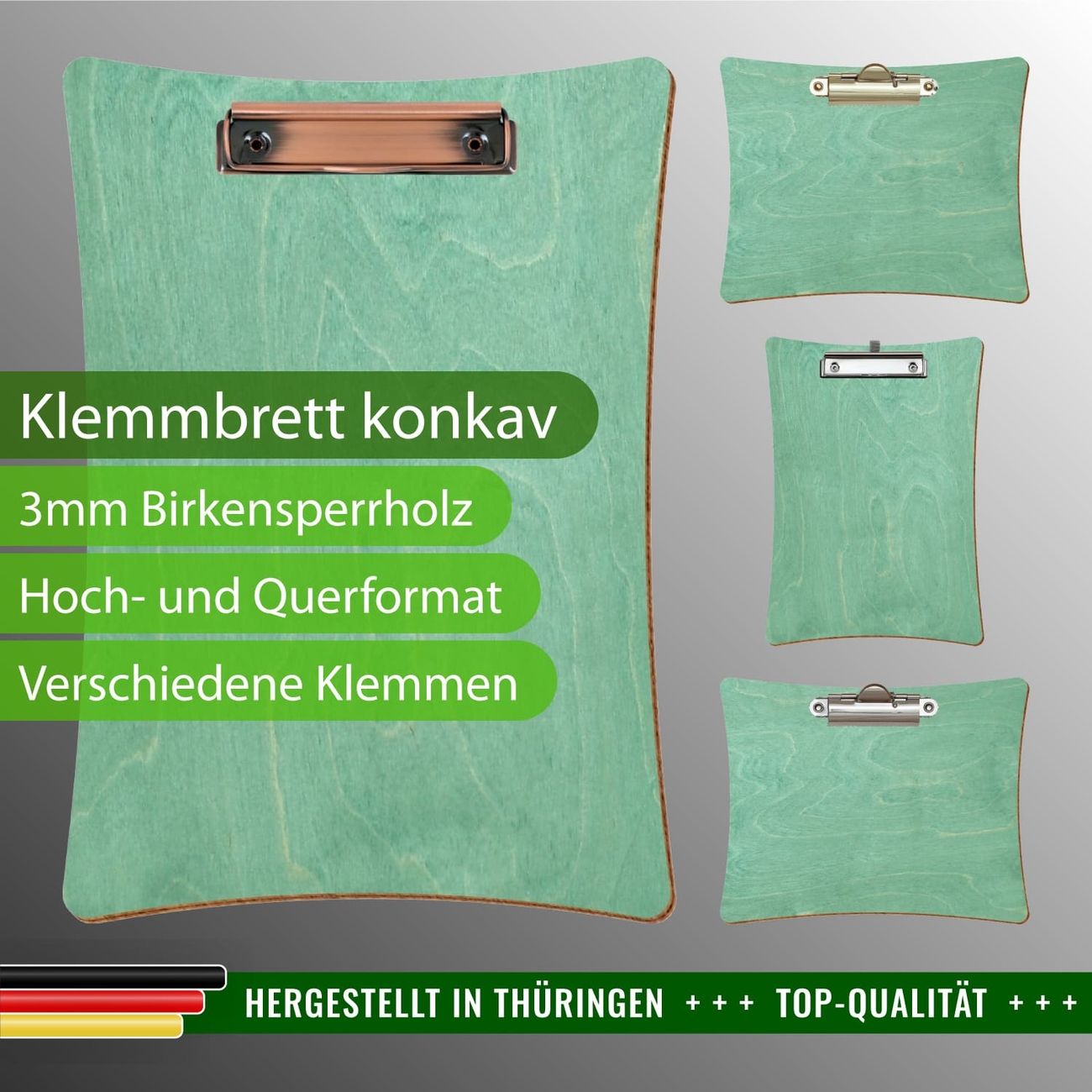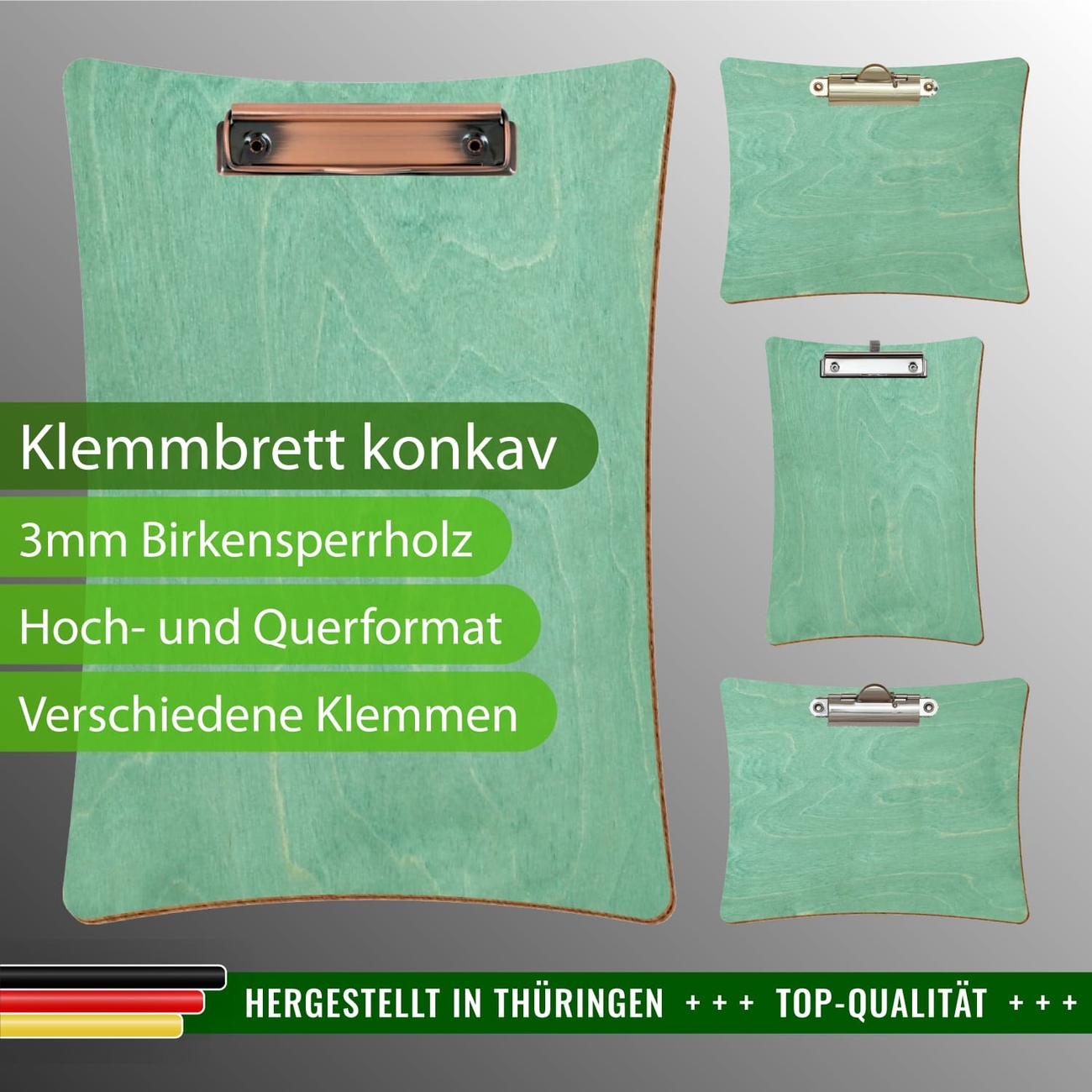 Bütic Holz Klemmbrett in abgerundeter, konkaver Form, Clipboard für A3, A4, A5 oder A6 Format, hoch oder quer.