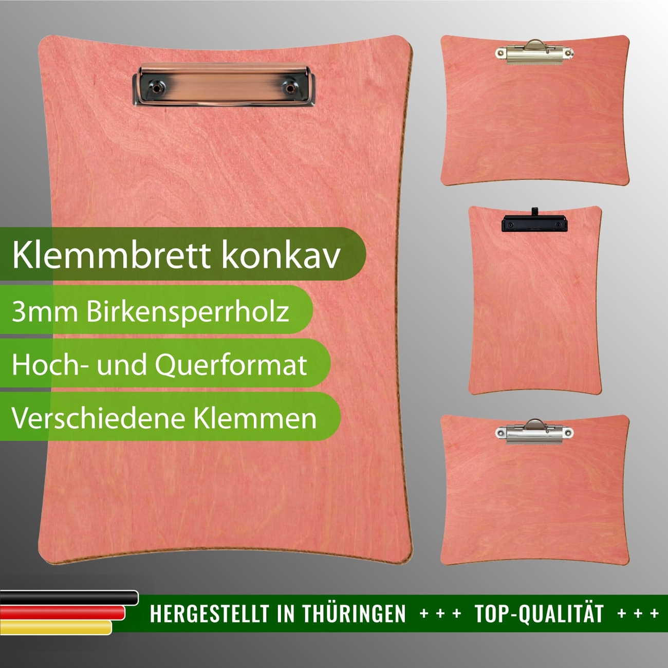 + Lieferumfang: ein Klemmbrett in ausgewählter Größe und Clipfarbe