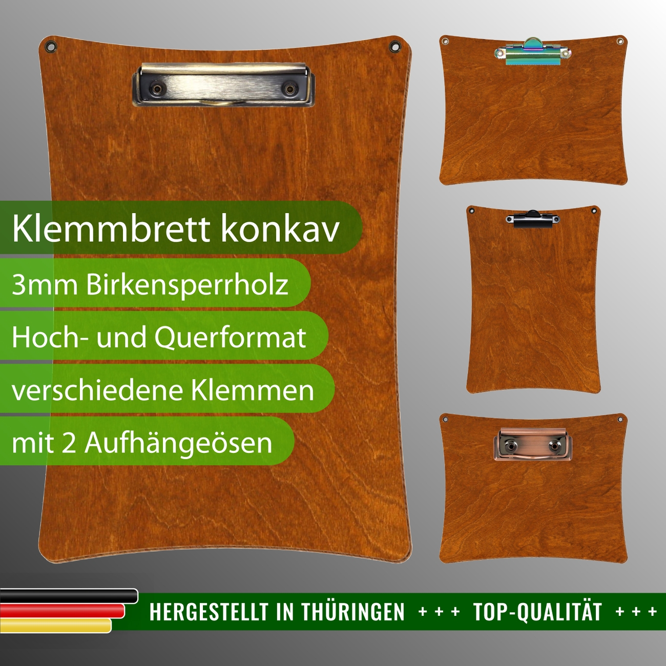 + Lieferumfang: ein Klemmbrett in ausgewählter Größe und Clipfarbe