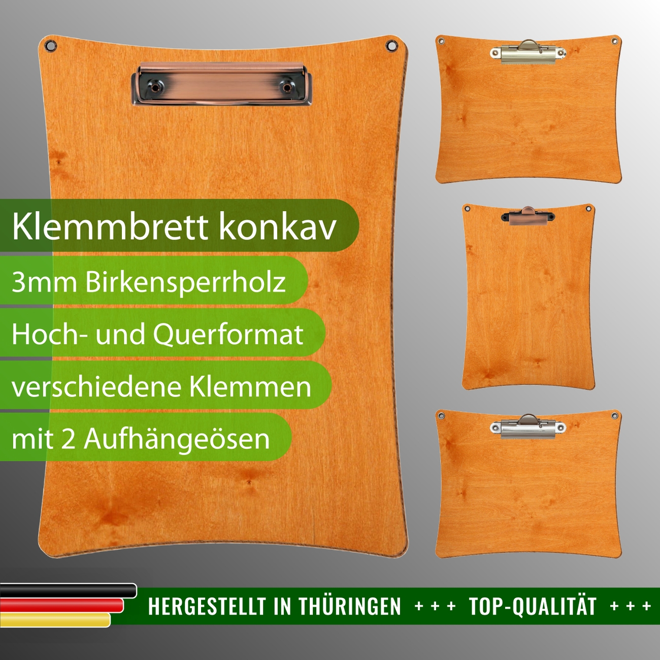 + Lieferumfang: ein Klemmbrett in ausgewählter Größe und Clipfarbe