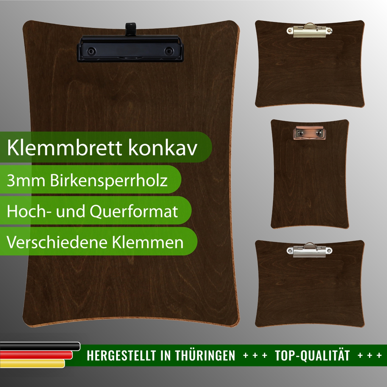 + Lieferumfang: ein Klemmbrett in ausgewählter Größe und Clipfarbe