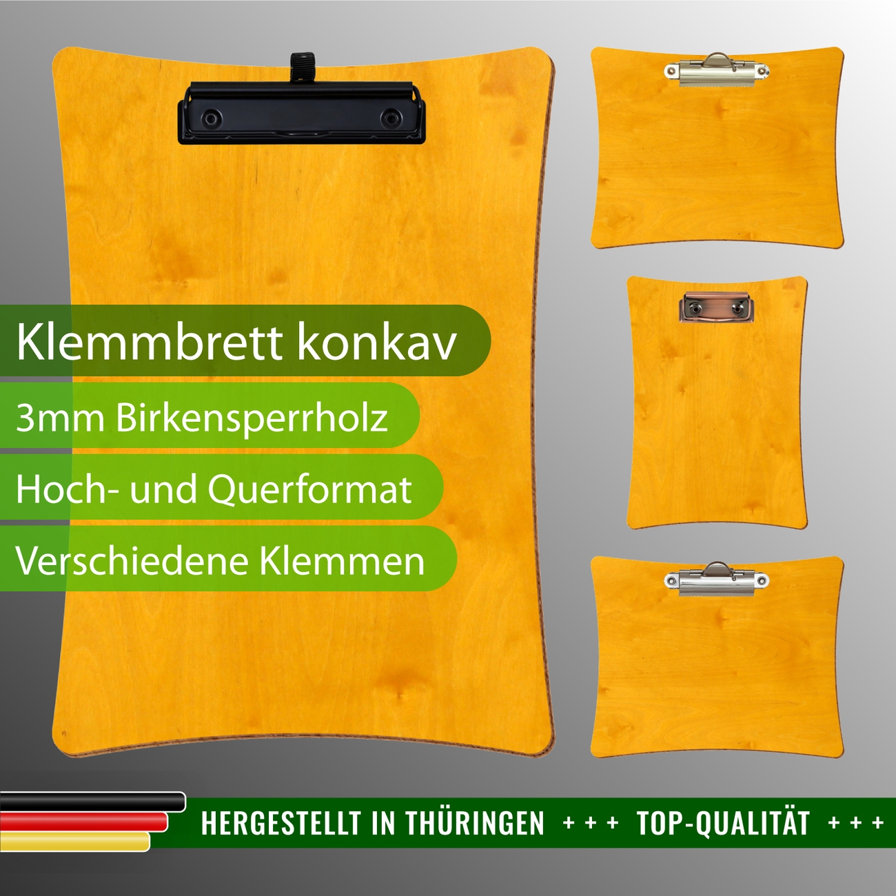 Bütic Holz Klemmbrett in abgerundeter, konkaver Form, Clipboard für A3, A4, A5 oder A6 Format, hoch oder quer.
