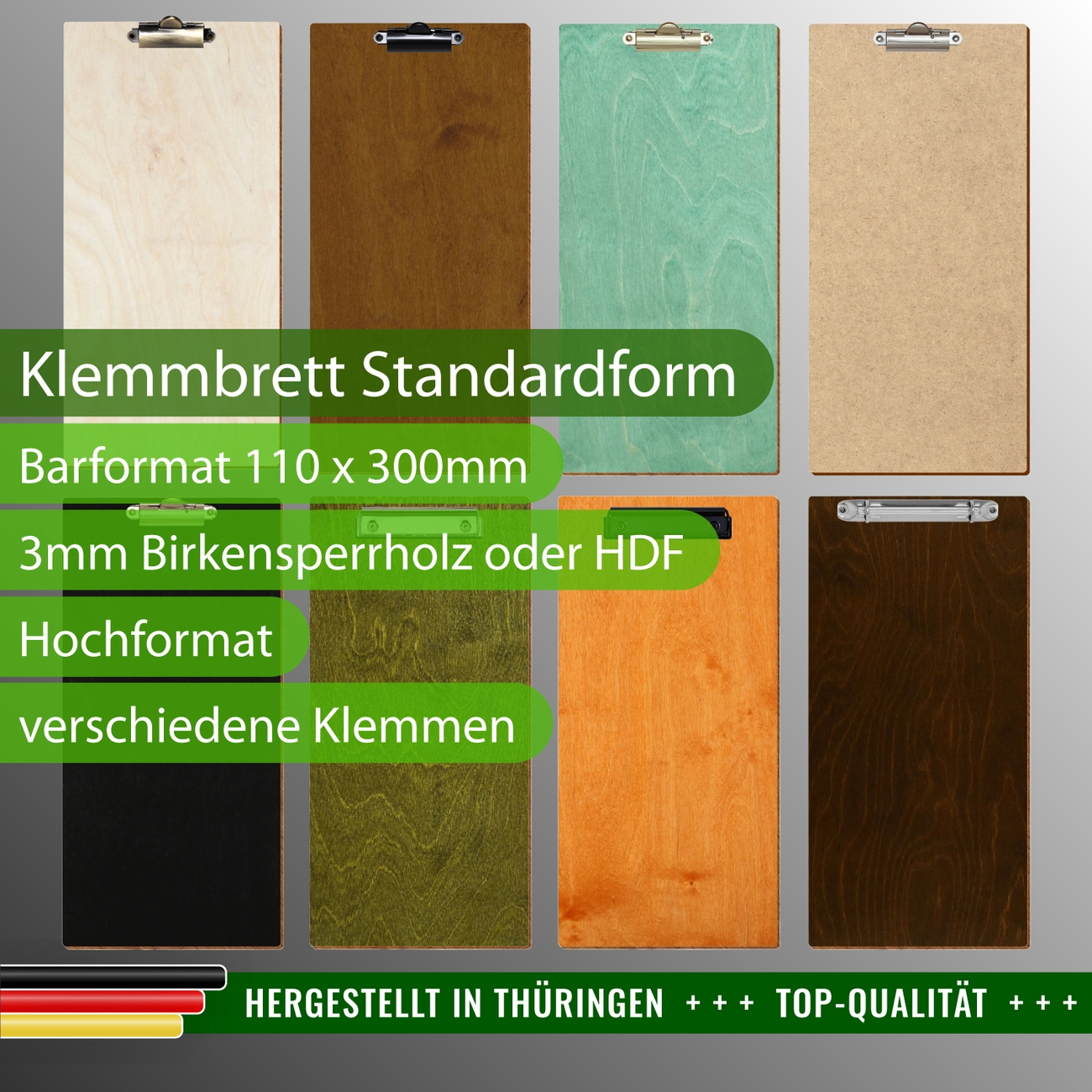 für Barformat 110 x 300mm im Hochformat. Unsere Bütic Holz Klemmbretter aus 3mm Birkensperrholz sind mit Klarlack versiegelt.
