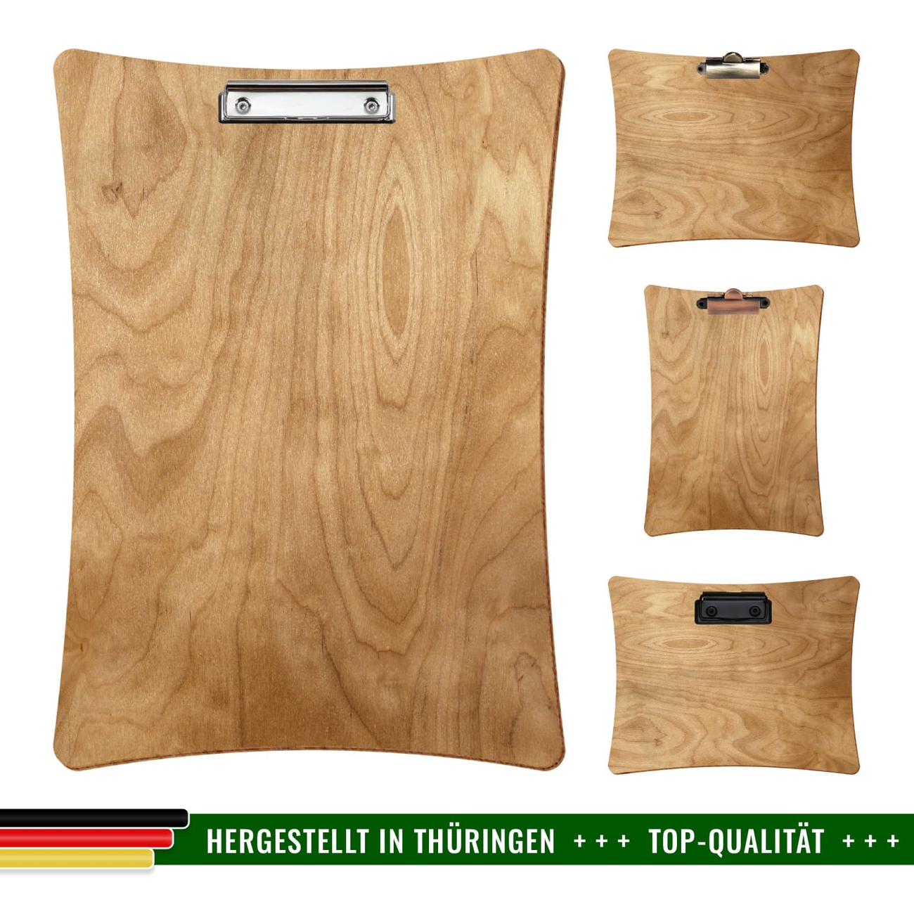 Bütic Holz Klemmbrett in abgerundeter, konkaver Form, Clipboard für A3, A4, A5 oder A6 Format, hoch oder quer.
