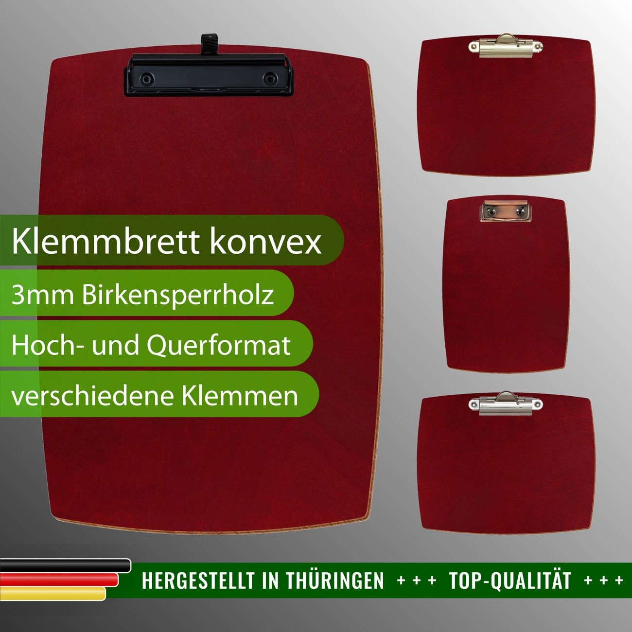 + Lieferumfang: ein Klemmbrett in ausgewählter Größe und Clipfarbe