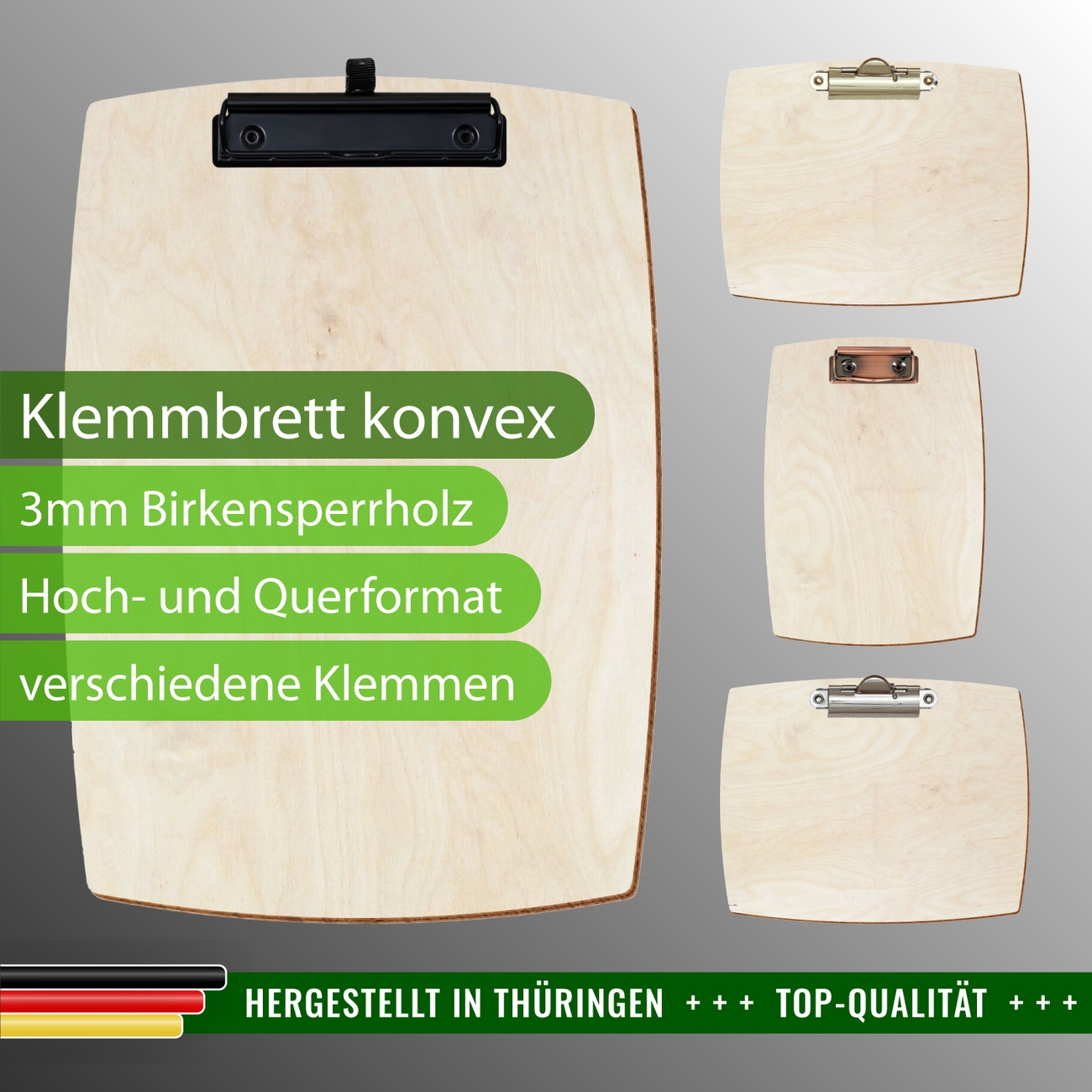 + Lieferumfang: ein Klemmbrett in ausgewählter Größe und Clipfarbe