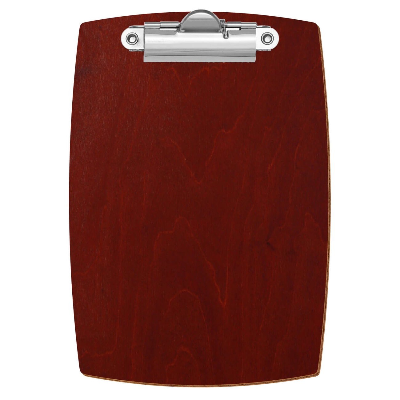 Klemmbrett, Holzklemmbrett, Clipboard, rotbraun, konvex, abgerundet, Unterlage, Schreibunterlage, Schreibbrett, Schreibplatte, Speisekartenhalter