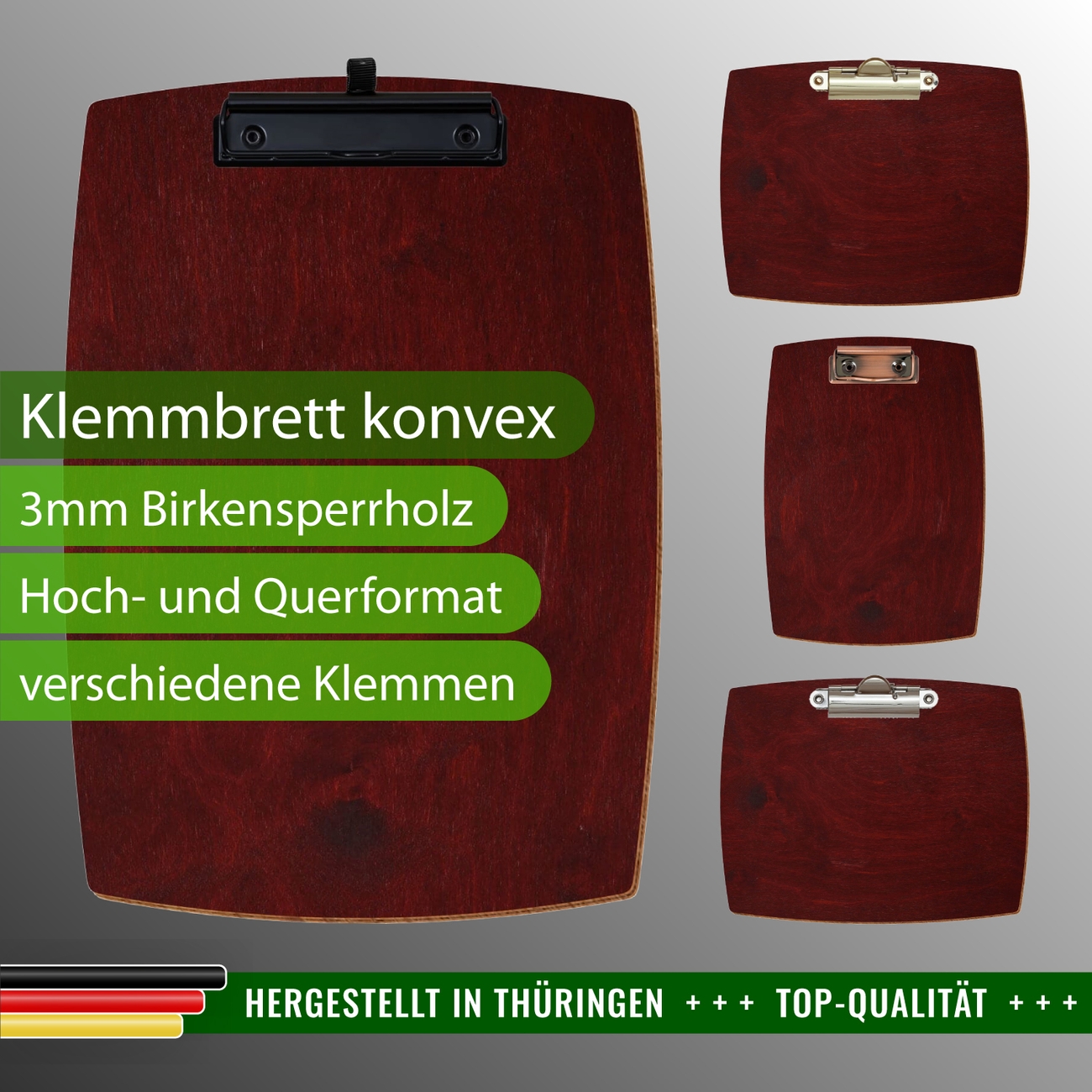Bütic Holz Klemmbrett in konvexer Form, Clipboard für A3, A4, A5 oder A6 Format, hoch oder quer.