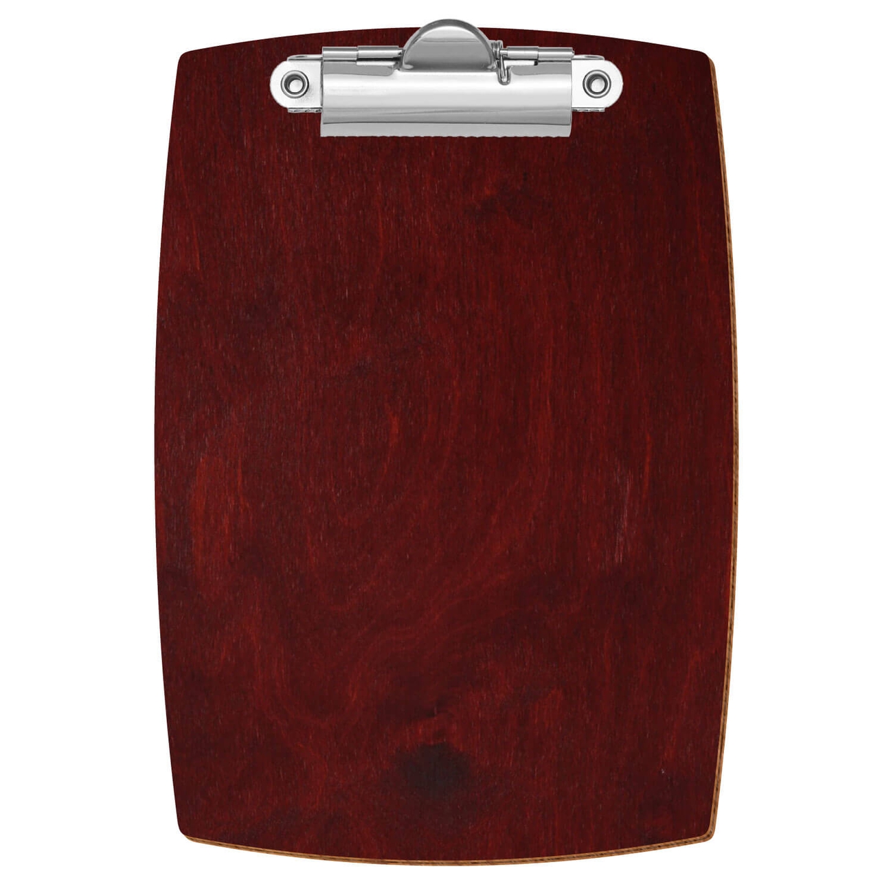 Klemmbrett, Holzklemmbrett, Clipboard, rotbraun, konvex, abgerundet, Unterlage, Schreibunterlage, Schreibbrett, Schreibplatte, Speisekartenhalter