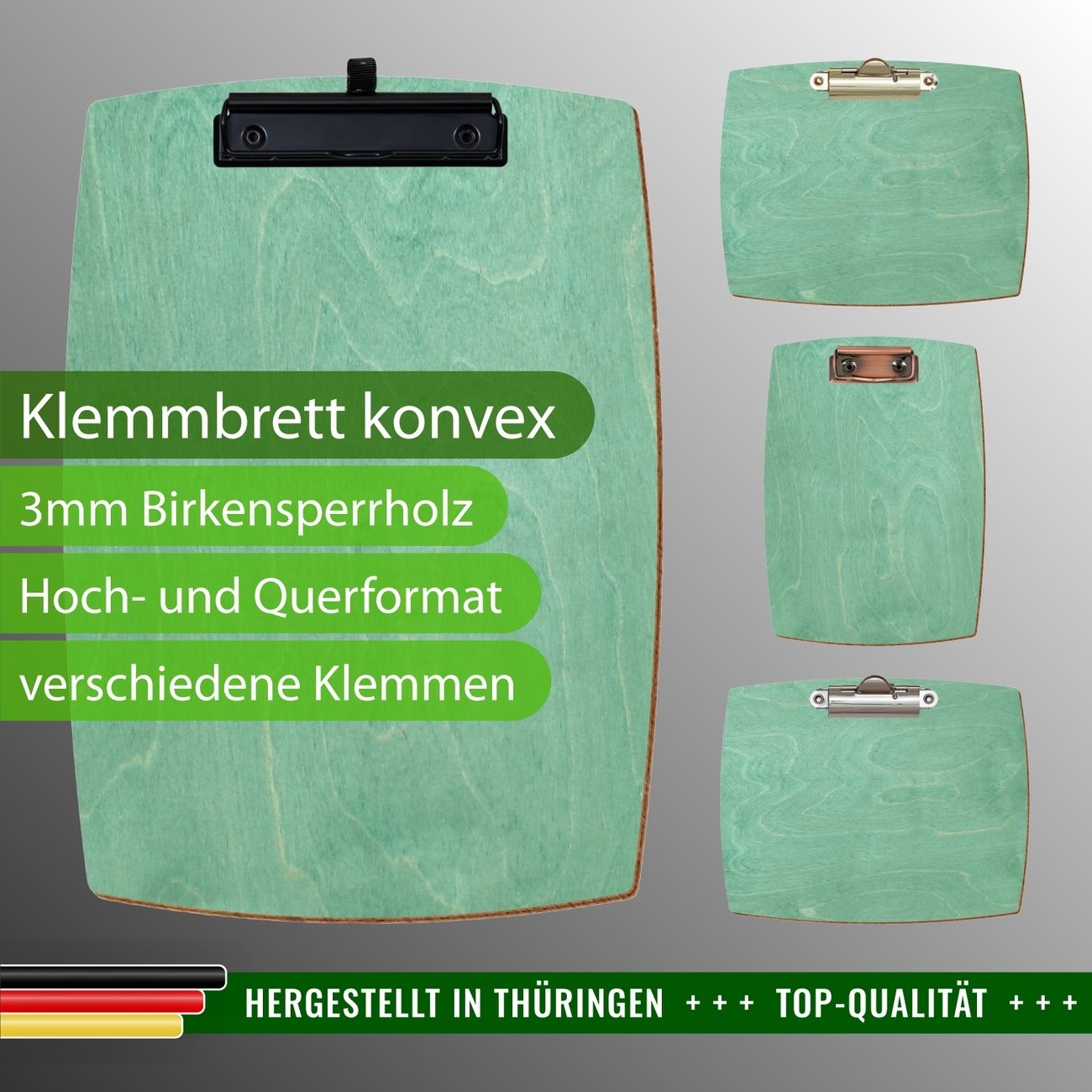 minzgrünes Holzklemmbrett, farbiges Klemmbrett, lackierte Schreibunterlage, konvexes Clipboard, Speisekartenhalter mit Klemme, Schreibunterlage aus Holz