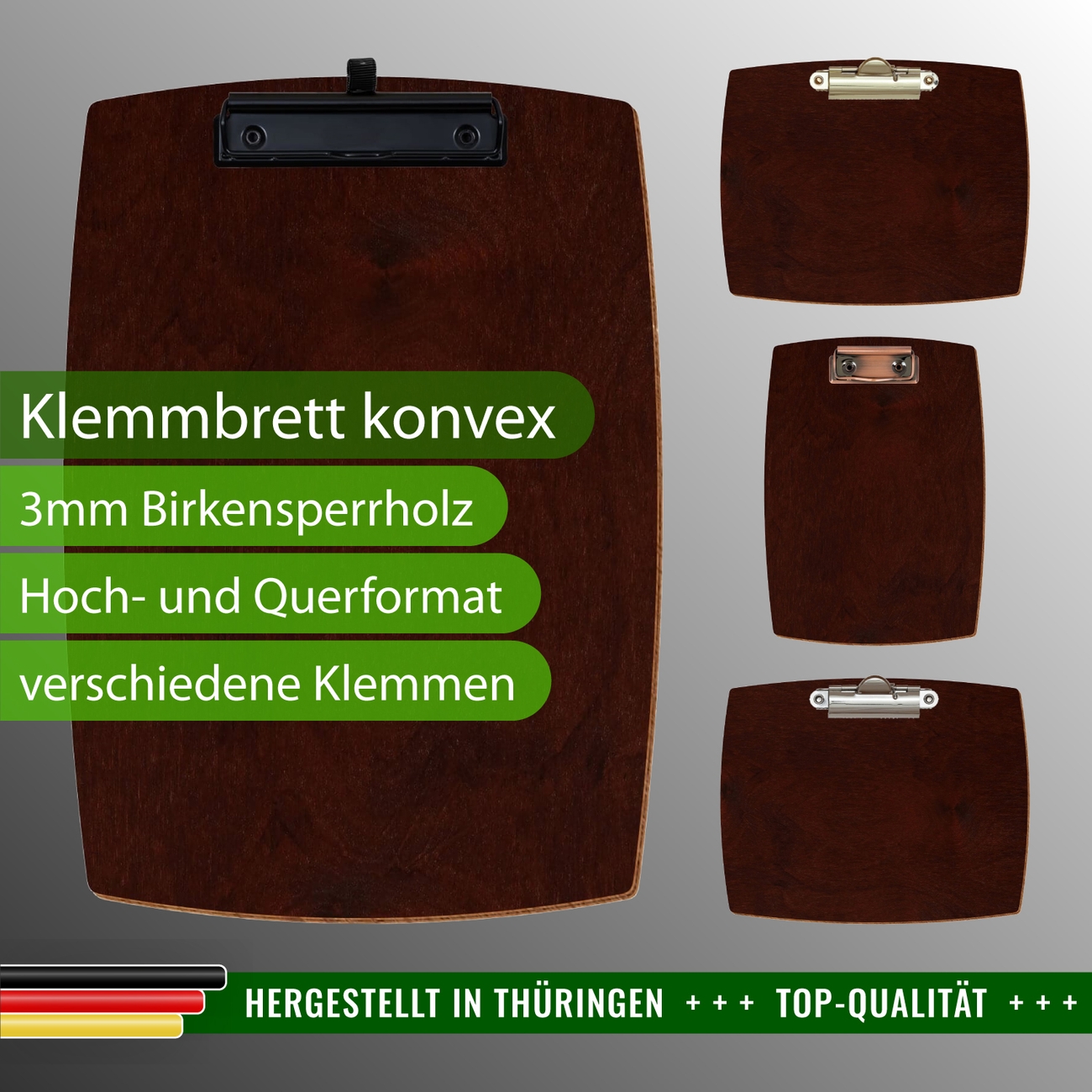 + Lieferumfang: ein Klemmbrett in ausgewählter Größe und Clipfarbe