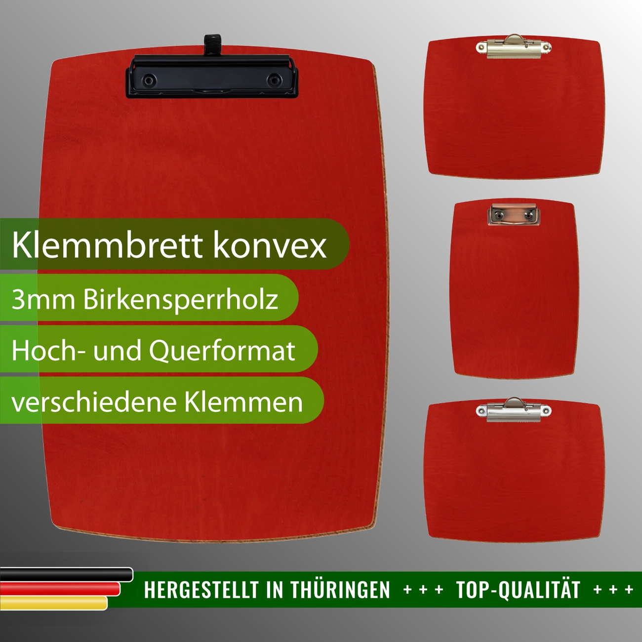 Bütic Holz Klemmbrett in konvexer Form, Clipboard für A3, A4, A5 oder A6 Format, hoch oder quer.