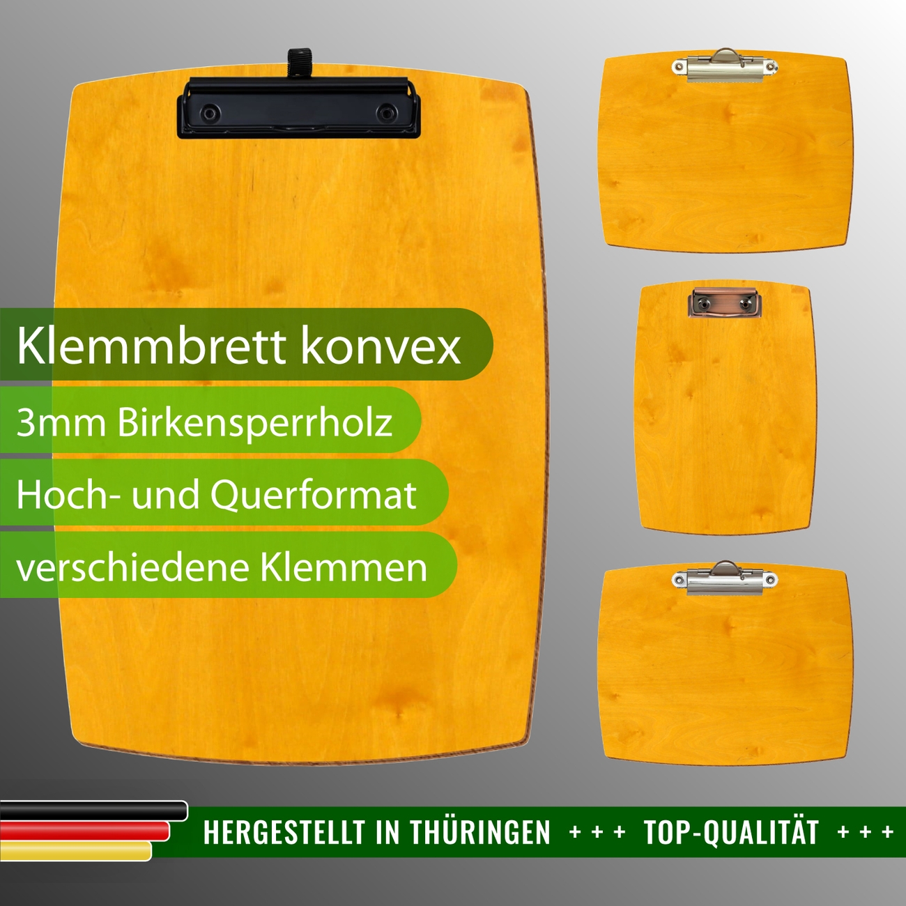 + Lieferumfang: ein Klemmbrett in ausgewählter Größe und Clipfarbe