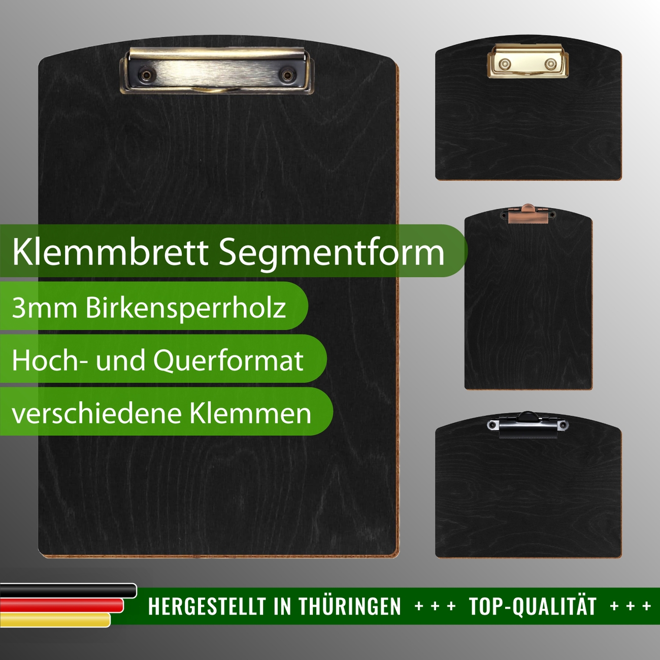 Holzklemmbrett Anthrazit, farbiges Klemmbrett, lackierte Schreibunterlage, Clipboard Segmentform, Speisekartenhalter mit Klemme, Schreibunterlage aus HolzDazu passend...