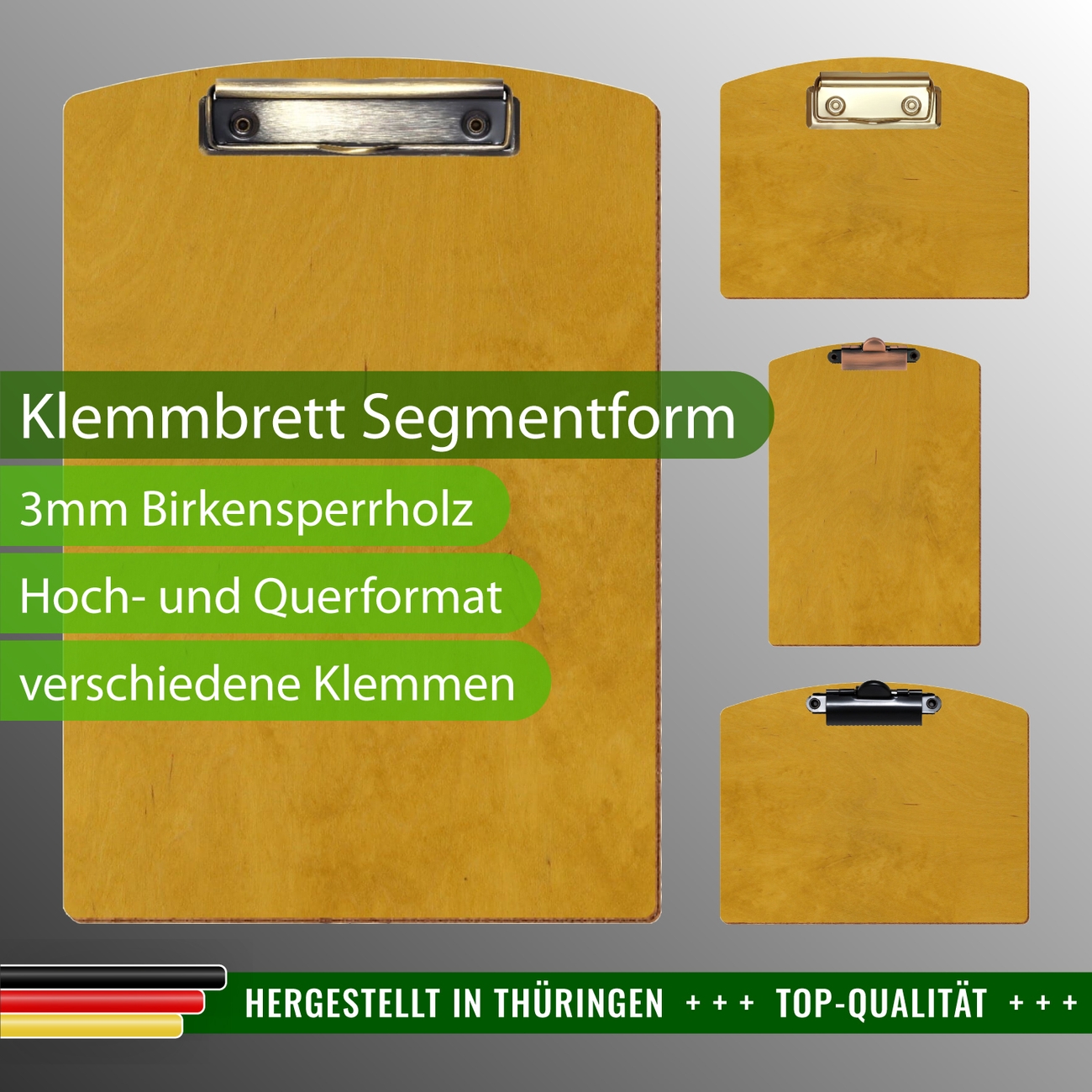 + Lieferumfang: ein Klemmbrett in ausgewählter Größe und Clipfarbe