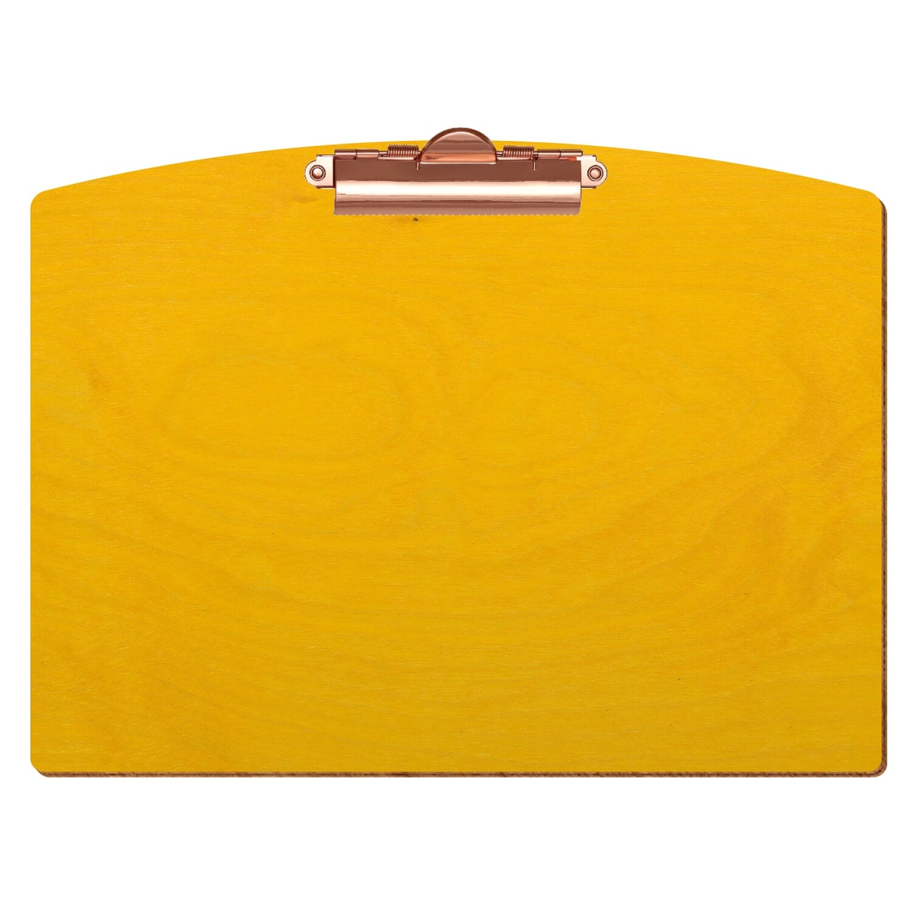 gelbes Holzklemmbrett, farbiges Klemmbrett, lackierte Schreibunterlage, Clipboard Segmentform, Speisekartenhalter mit Klemme, Schreibunterlage aus Holz
