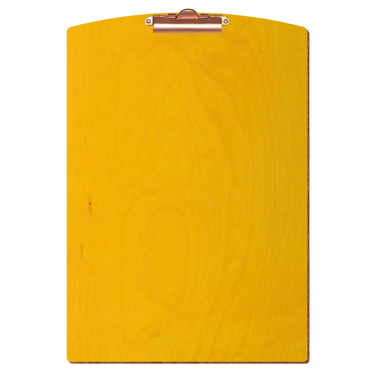 gelbes Holzklemmbrett, farbiges Klemmbrett, lackierte Schreibunterlage, Clipboard Segmentform, Speisekartenhalter mit Klemme, Schreibunterlage aus Holz