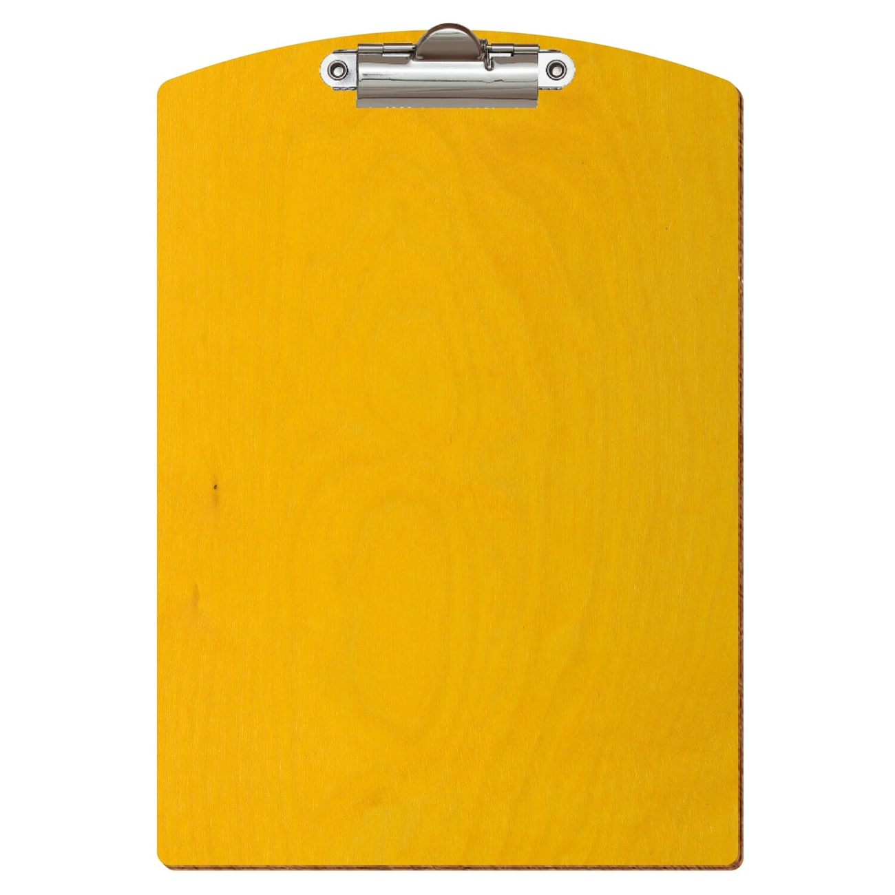 gelbes Holzklemmbrett, farbiges Klemmbrett, lackierte Schreibunterlage, Clipboard Segmentform, Speisekartenhalter mit Klemme, Schreibunterlage aus Holz