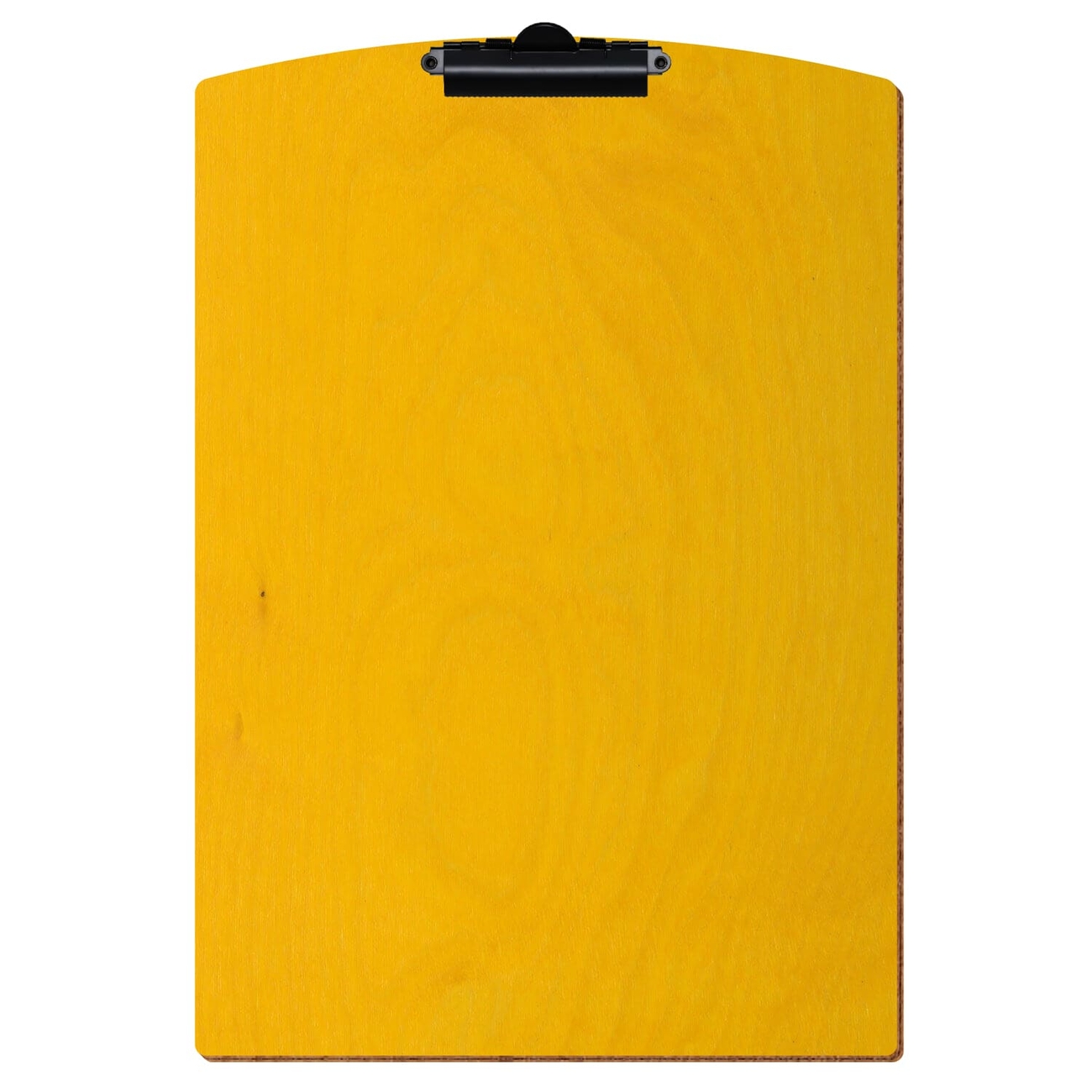 gelbes Holzklemmbrett, farbiges Klemmbrett, lackierte Schreibunterlage, Clipboard Segmentform, Speisekartenhalter mit Klemme, Schreibunterlage aus Holz