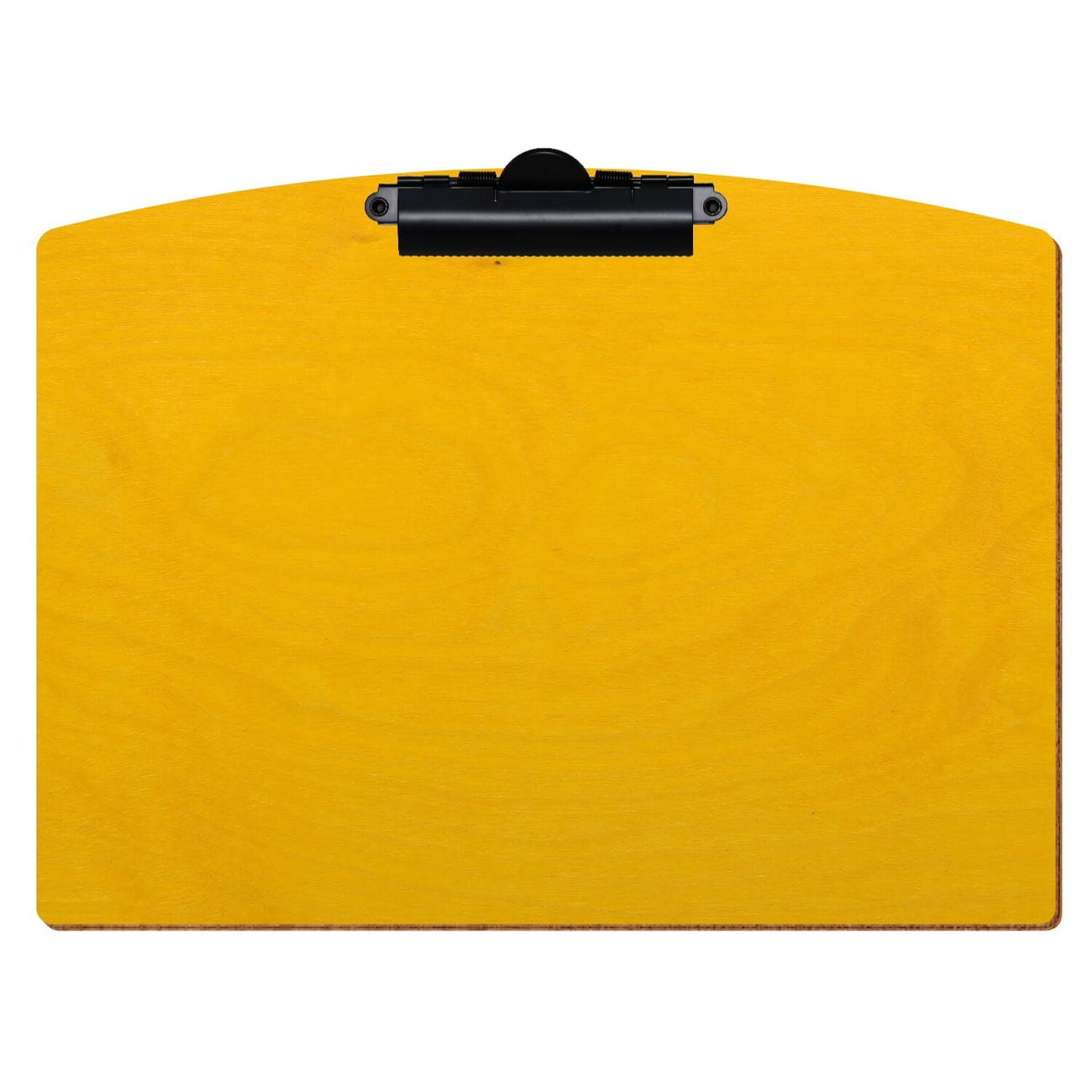 gelbes Holzklemmbrett, farbiges Klemmbrett, lackierte Schreibunterlage, Clipboard Segmentform, Speisekartenhalter mit Klemme, Schreibunterlage aus Holz